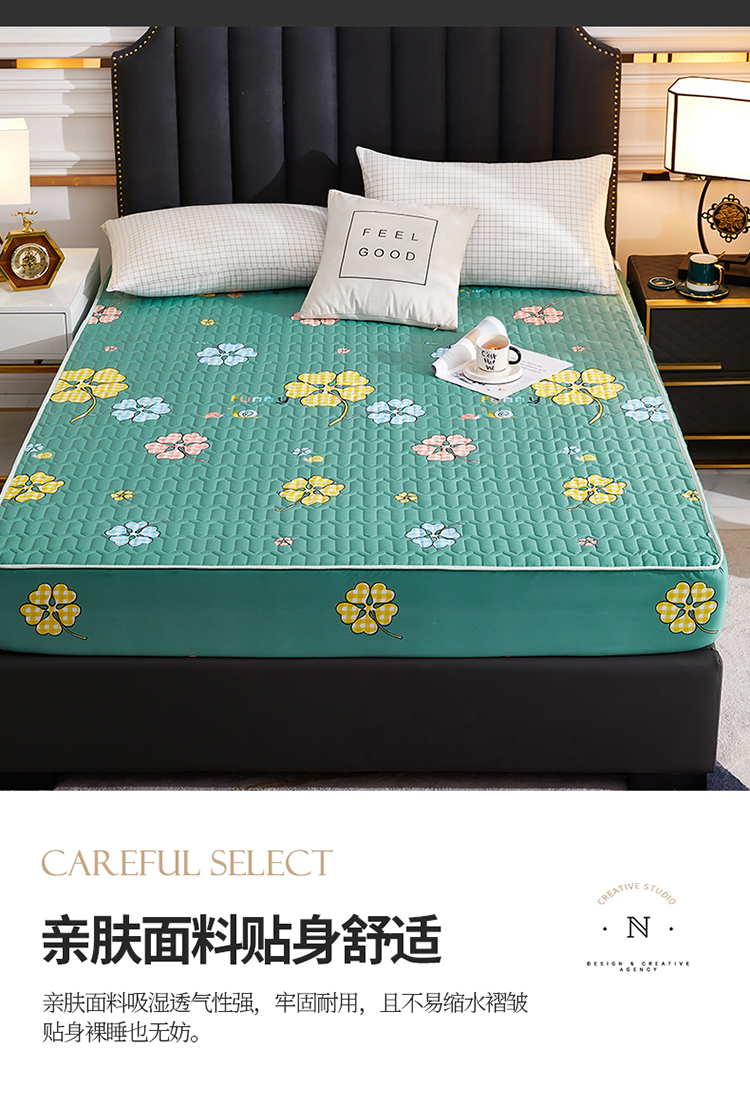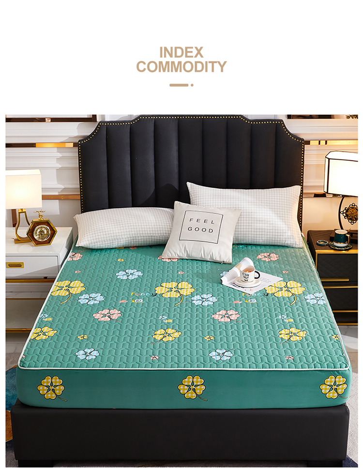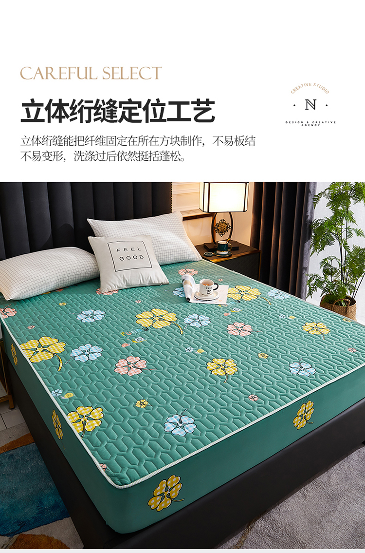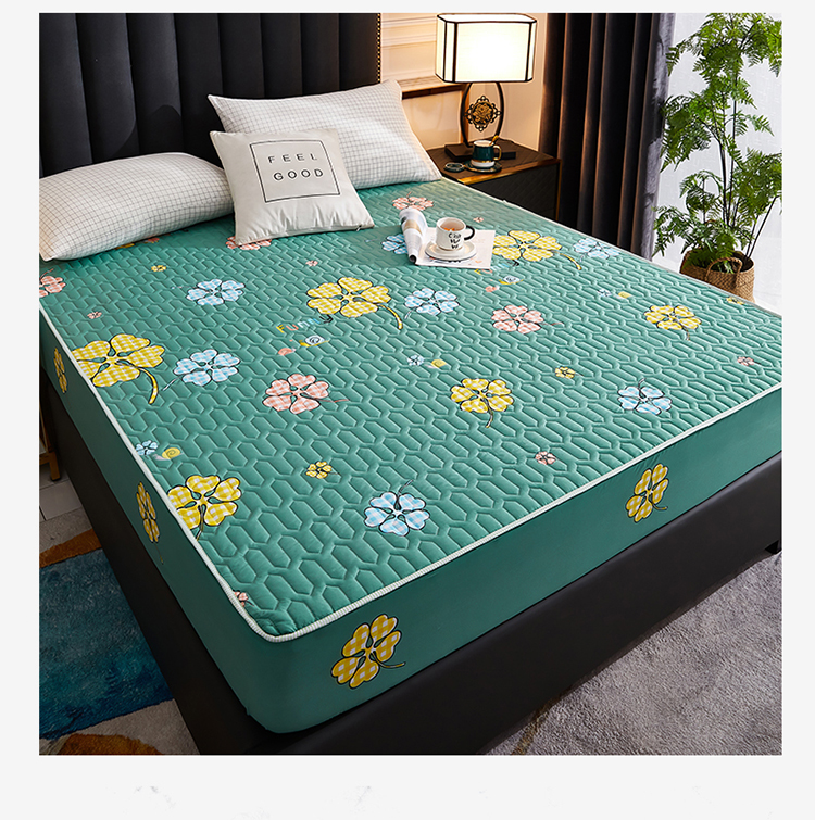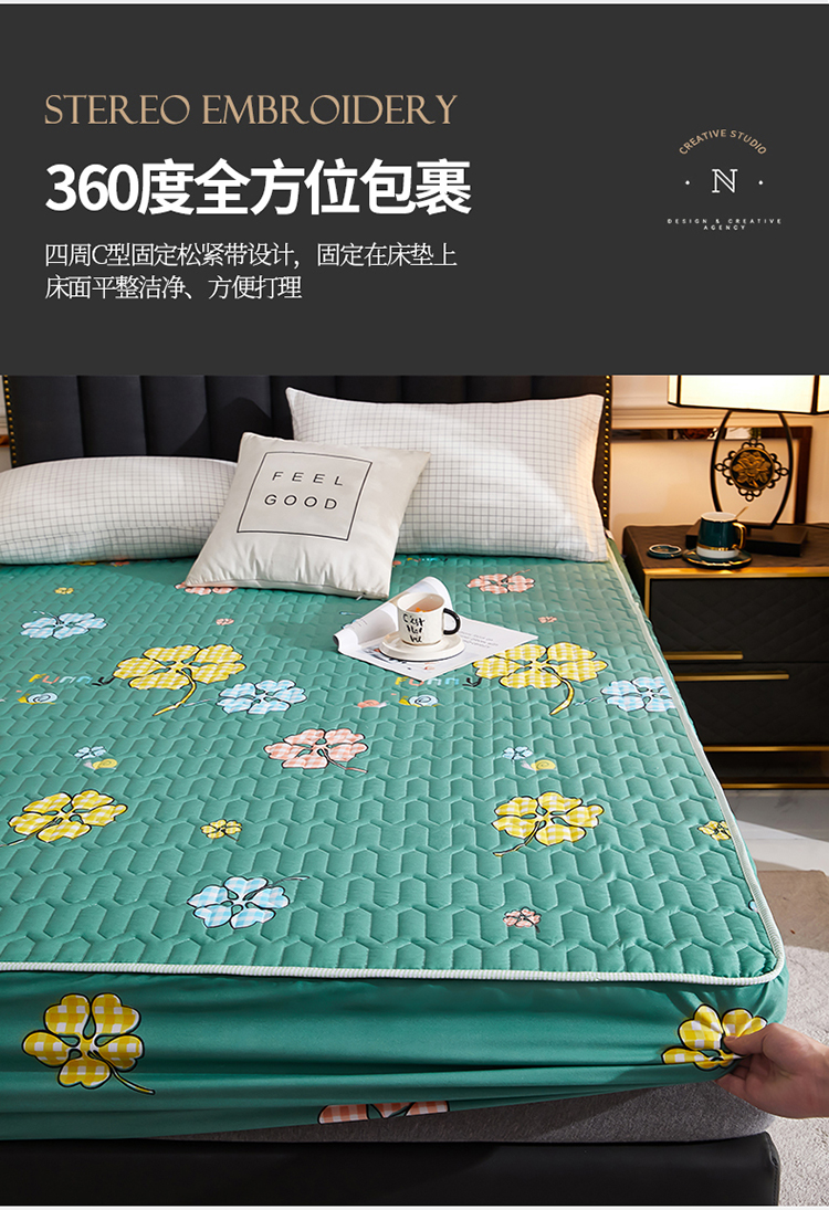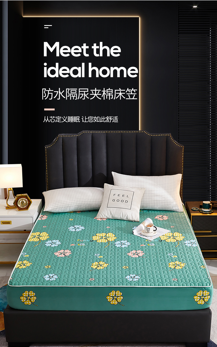 • 91家纺网 家纺一手货源 找家纺 苏木年华2023新款抗菌加厚防水隔尿夹棉床笠 绿色小花