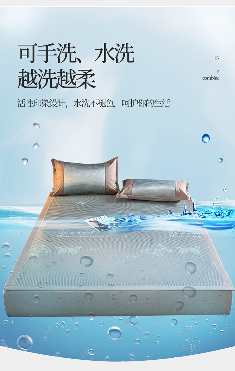 商品名称: 伊被源 2023新款高密度纺织碳光冰藤席 蝴蝶-灰绿