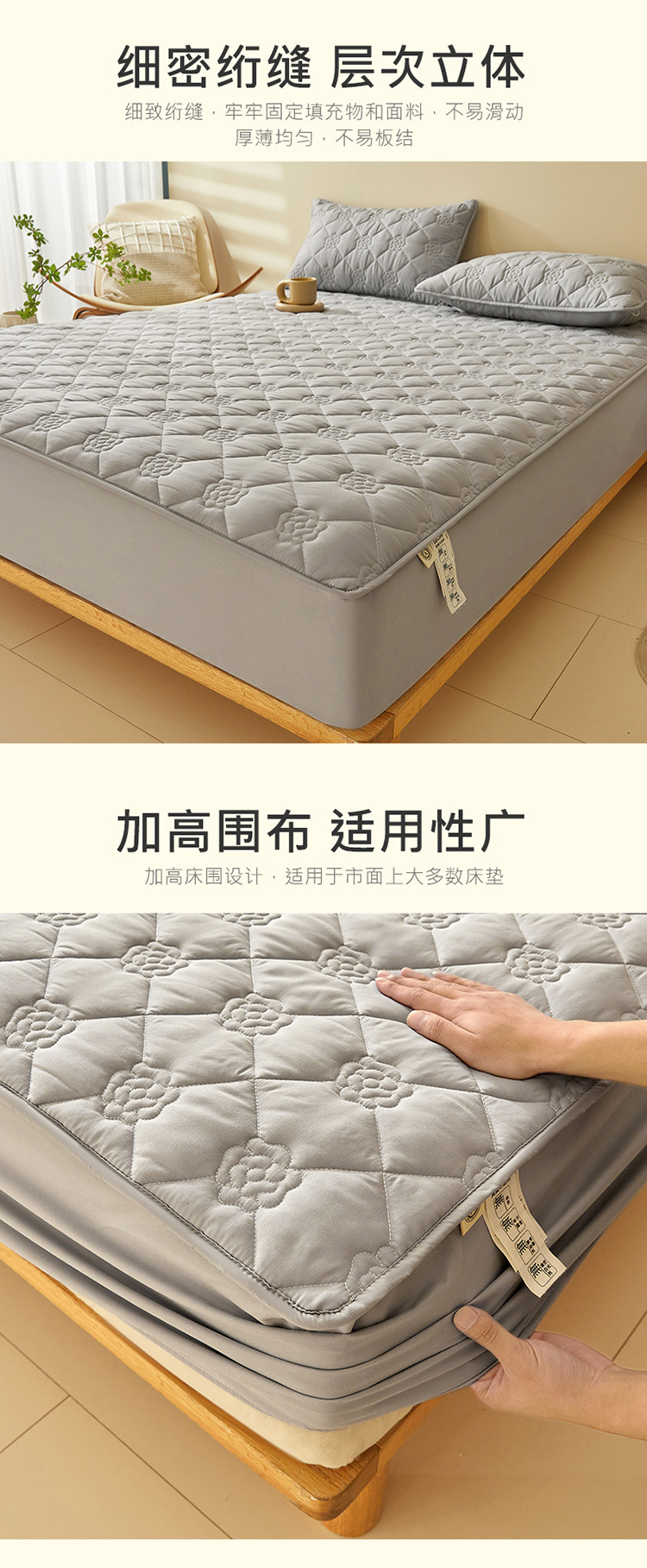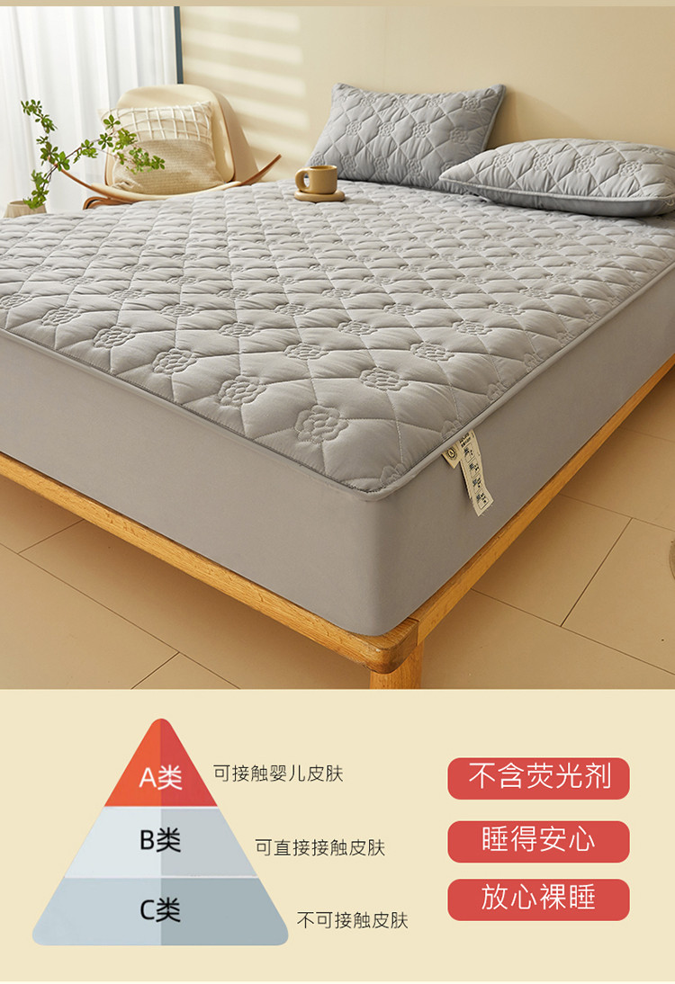 (总)给笠 2025新款A类超声波夹棉床笠,灰色,卡其,米白