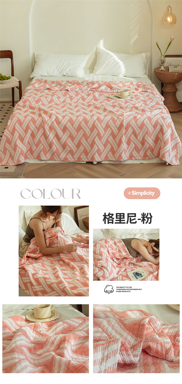 商品名称:雯雨 2023新款塞尚风格全棉纱布毛巾被 格里尼-粉