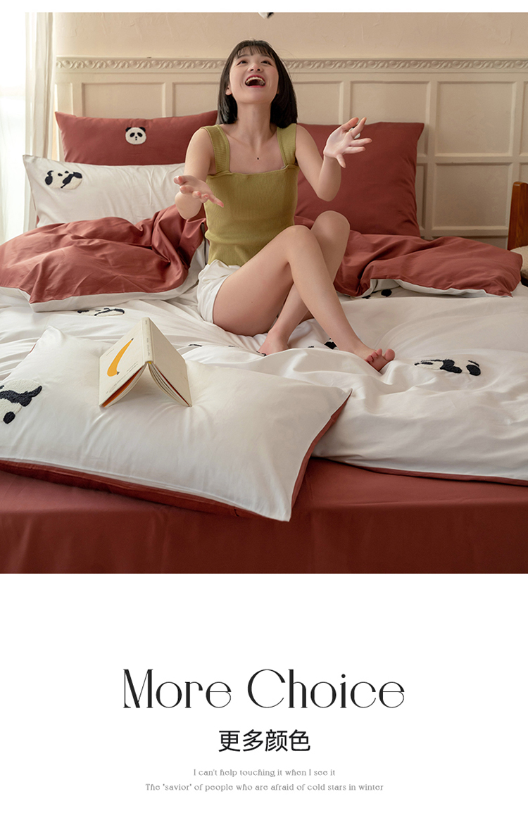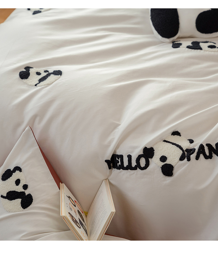 名品优仓 2023新款水洗棉毛巾绣撞边款式四件套-玫瑰熊 玫瑰熊猫,玫瑰熊猫