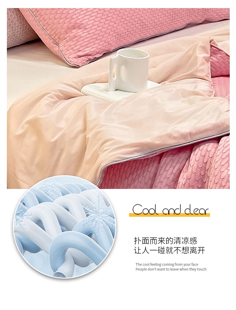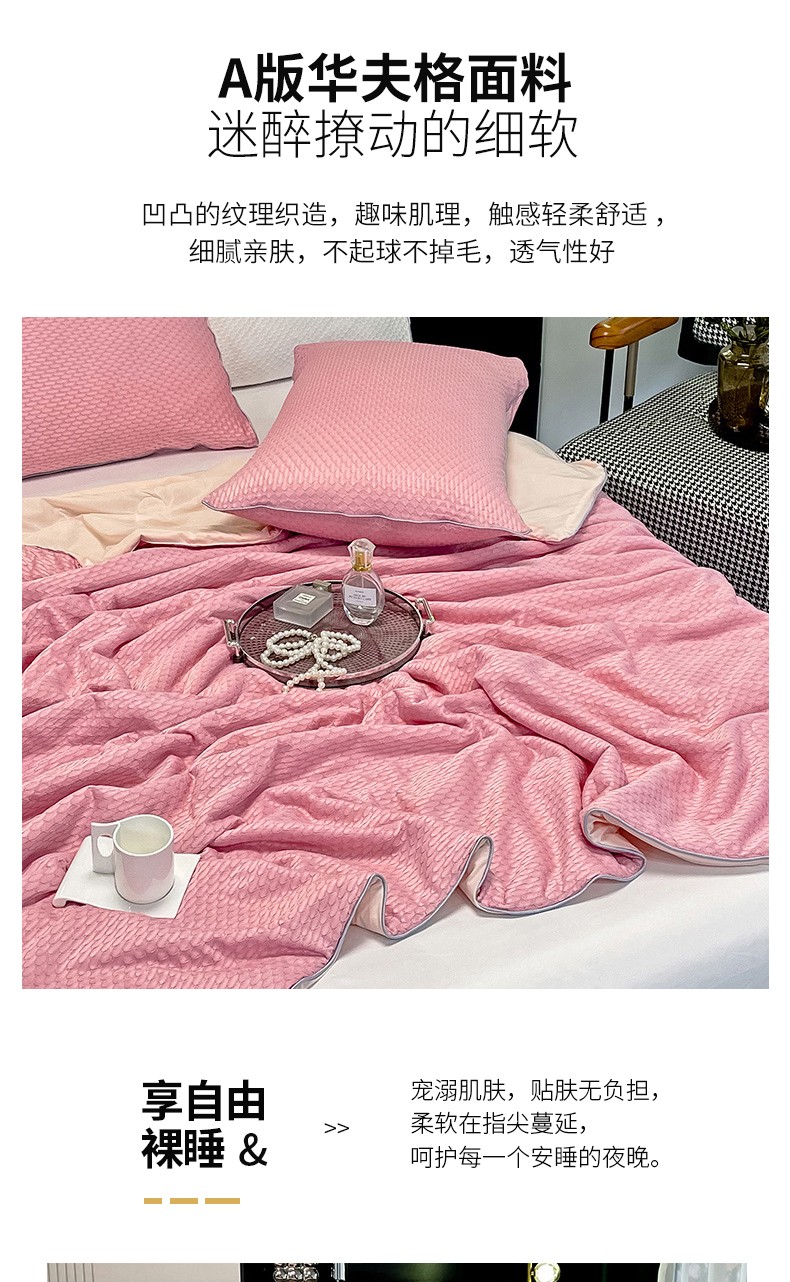 商品名称:慕晨 2023新款A类华夫格凉感丝夏被空调被夏凉被 华夫格粉玉