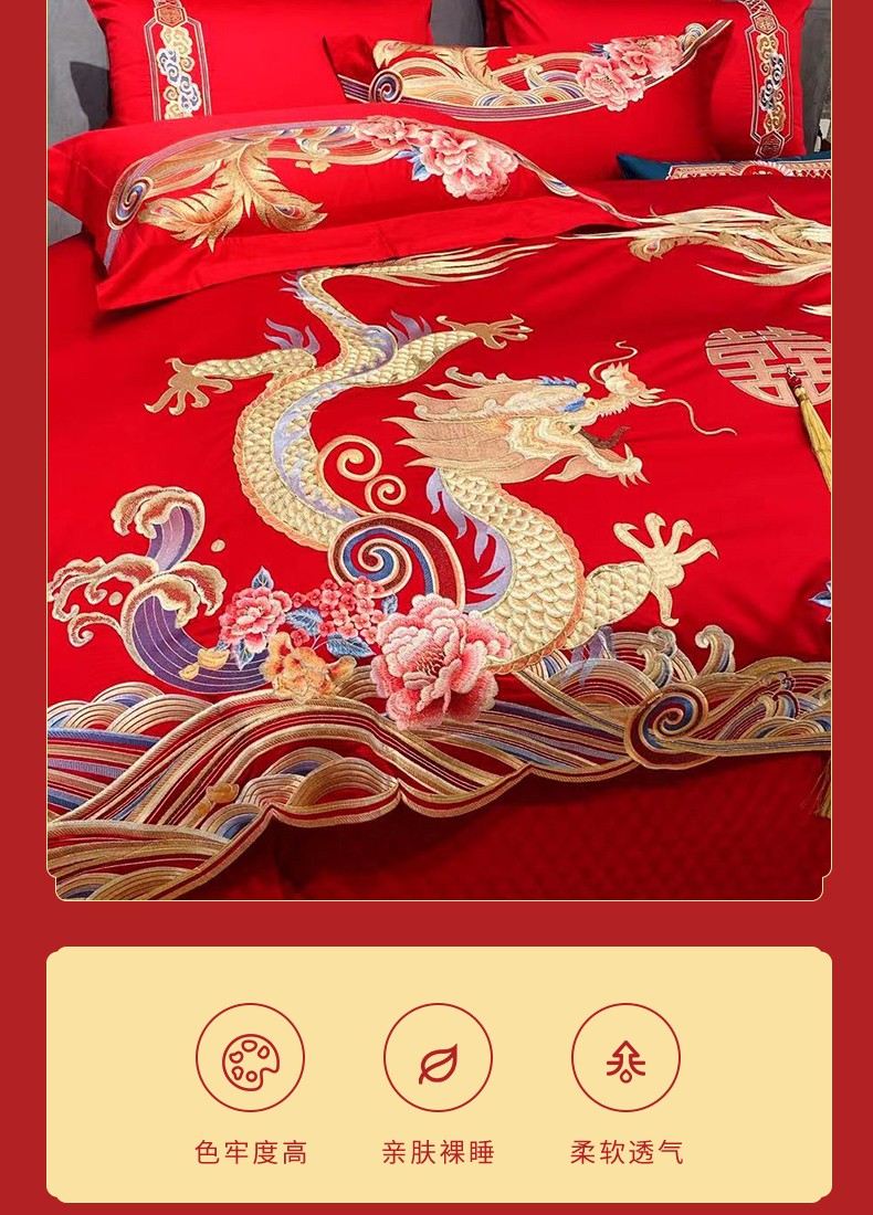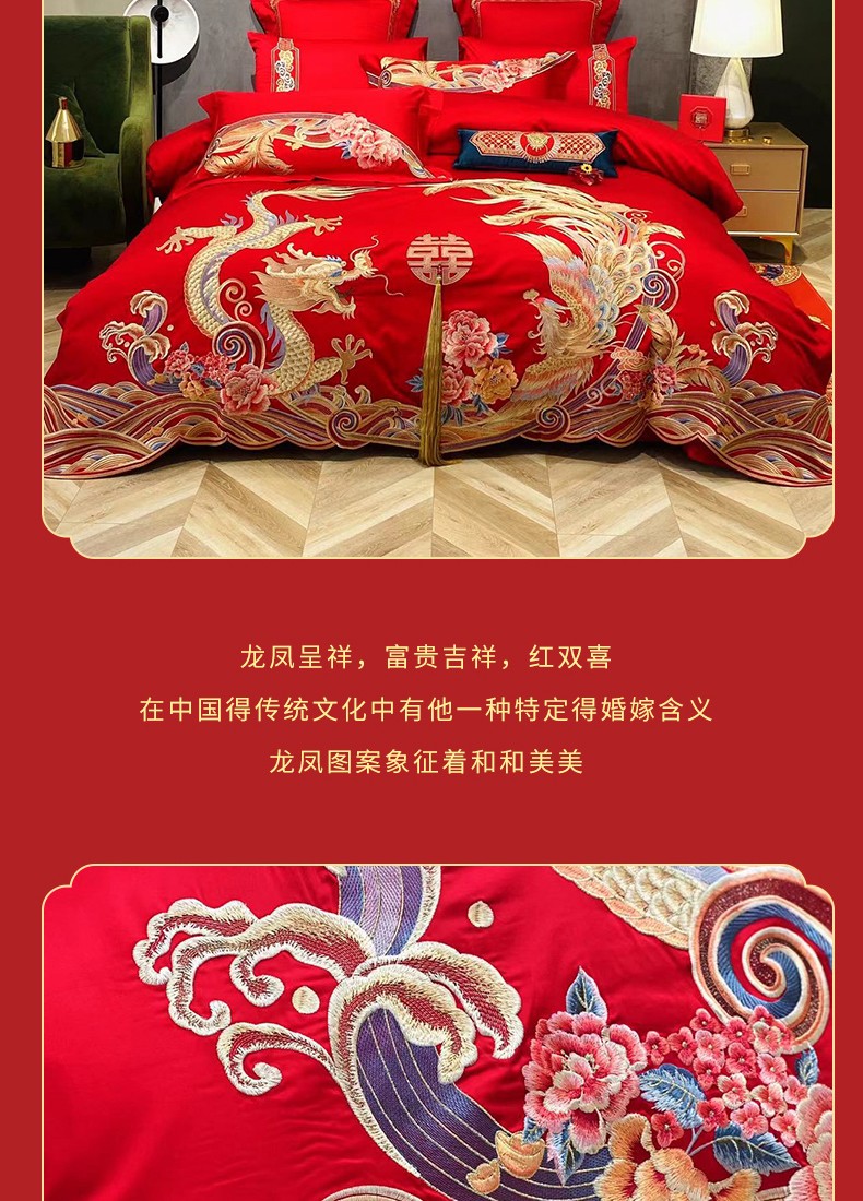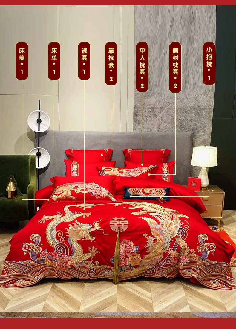 当前位置: 91家纺网 > 商品网购 > 床品套件 > 四件套 > 婚庆四件套 > 美娘阁新款长绒棉刺绣婚庆全棉纯棉四件套六件套多件套 龙凤呈祥