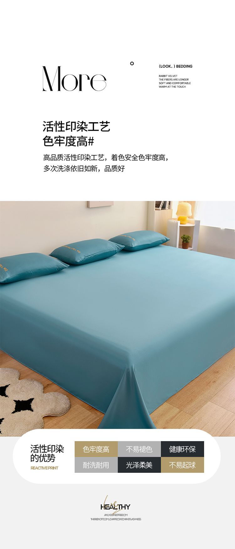 商品名称:七仙女家纺 2025新款水洗真丝天丝系列加大炕单 浅水蓝