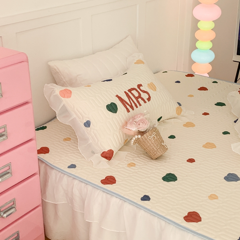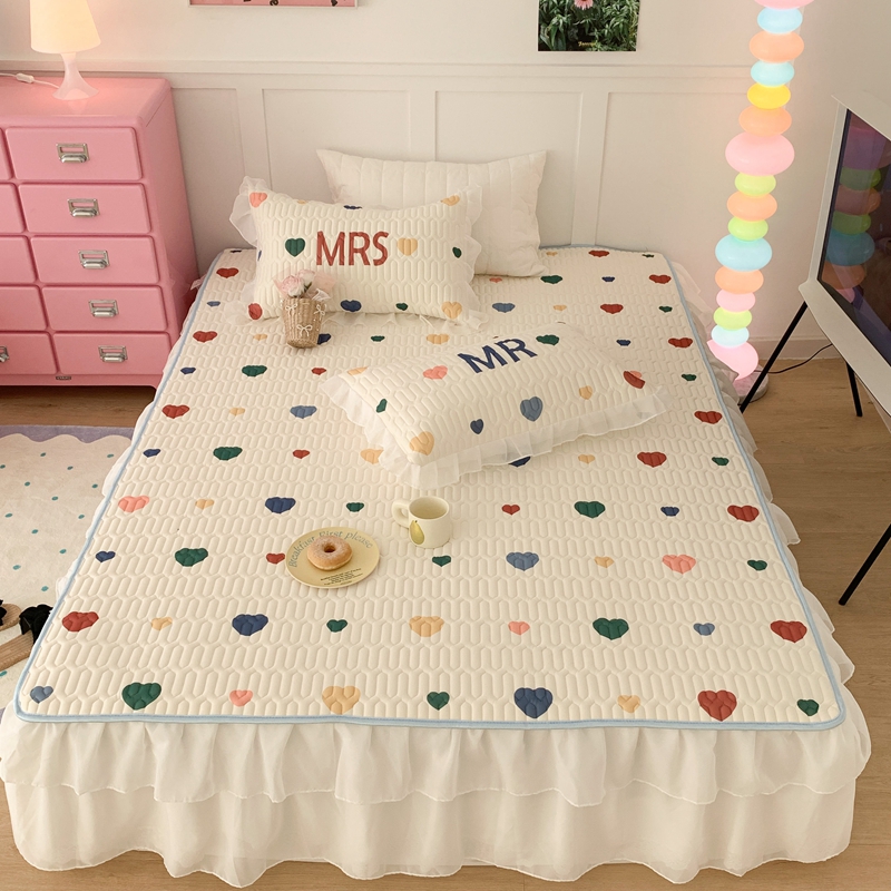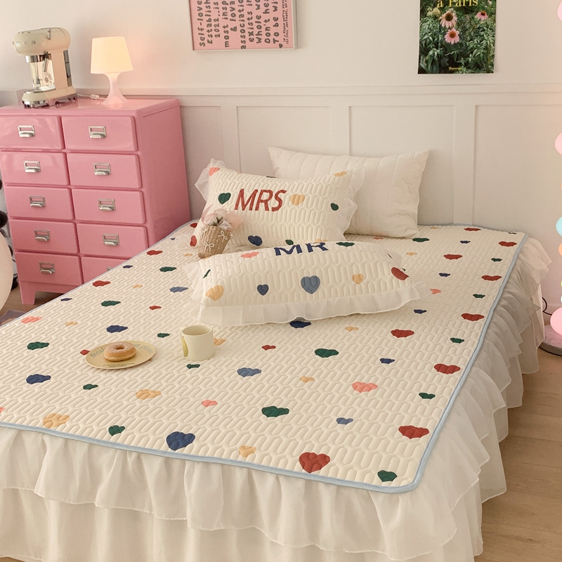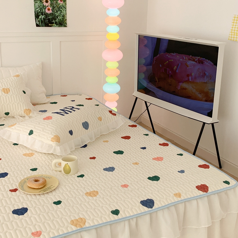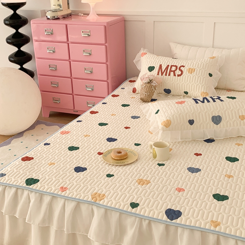 昔可家纺 2023新款双层雪纺纱乳胶床裙 彩色爱心