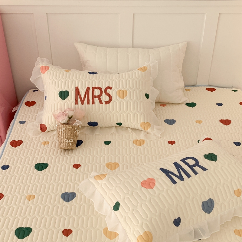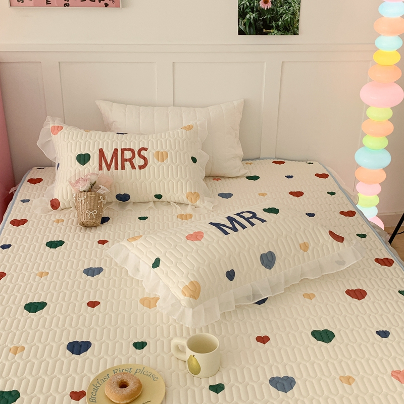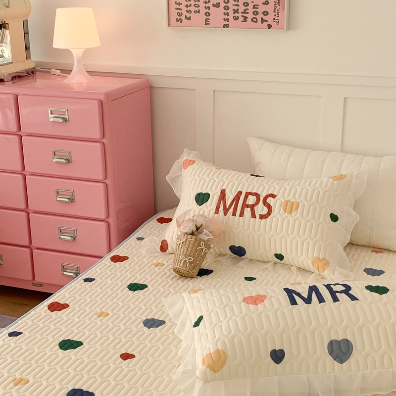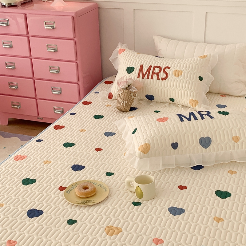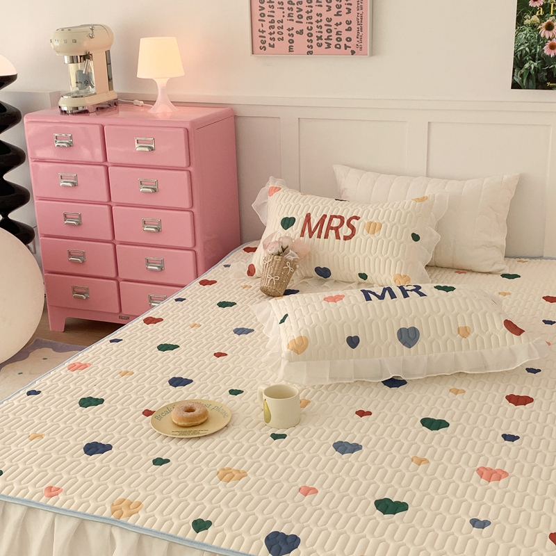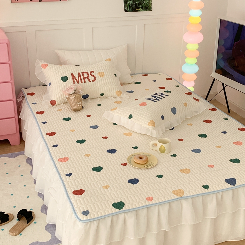 昔可家纺 2023新款双层雪纺纱乳胶床裙 彩色爱心