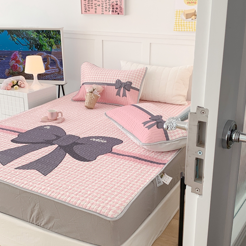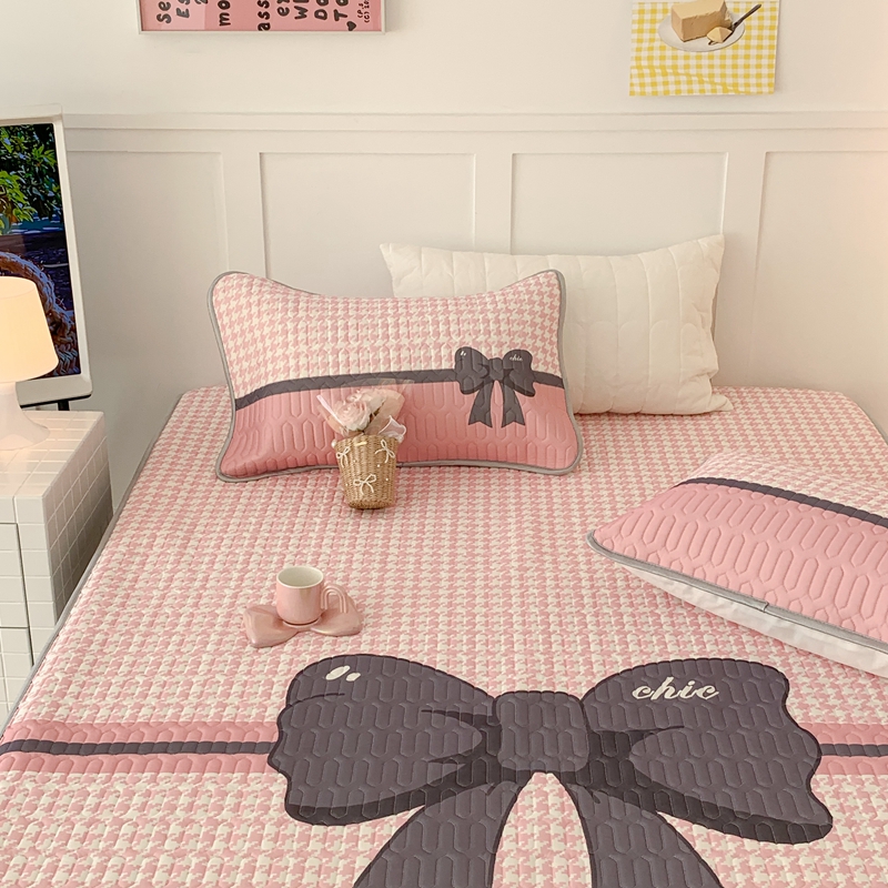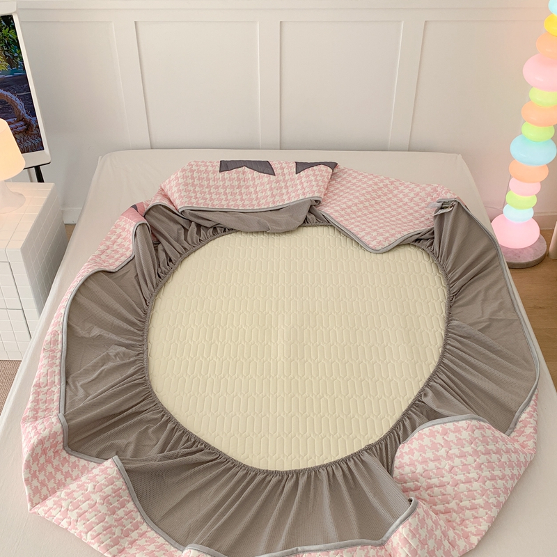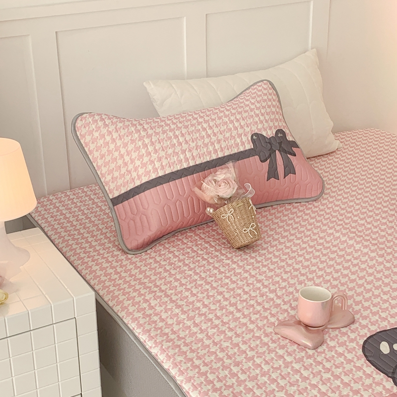 昔可 2023新款床笠款乳胶凉席 粉粉千鸟格