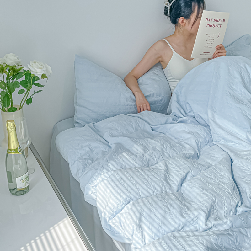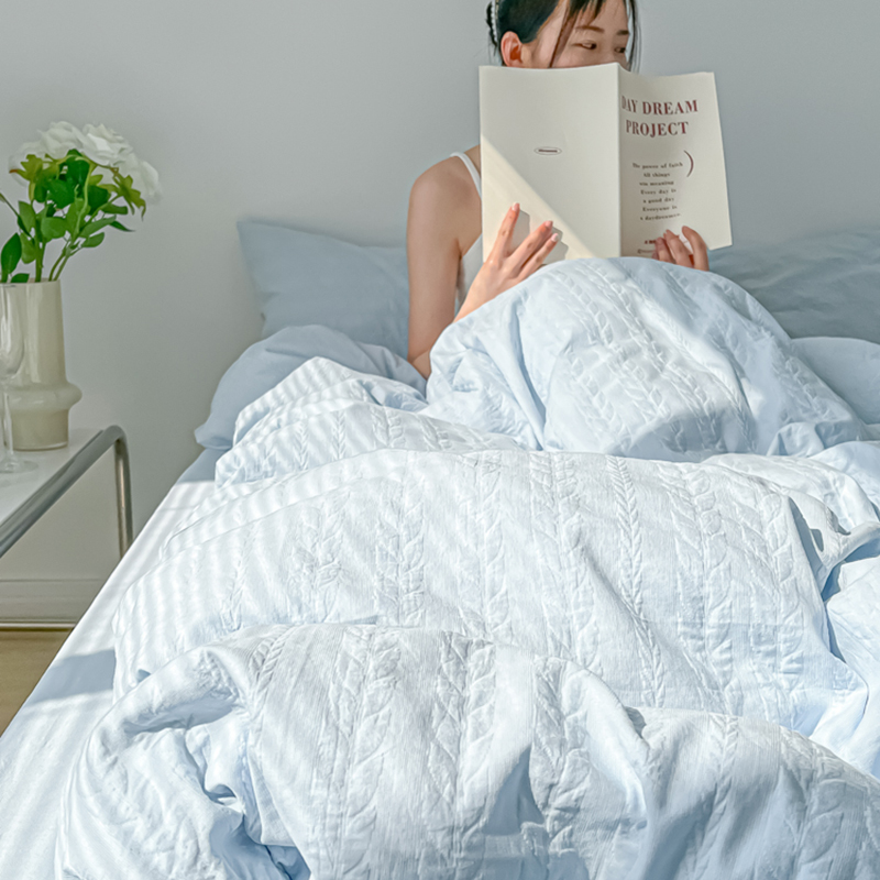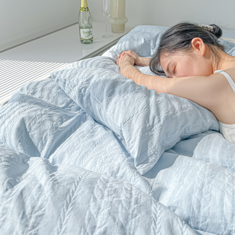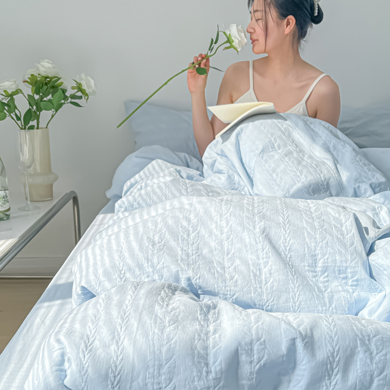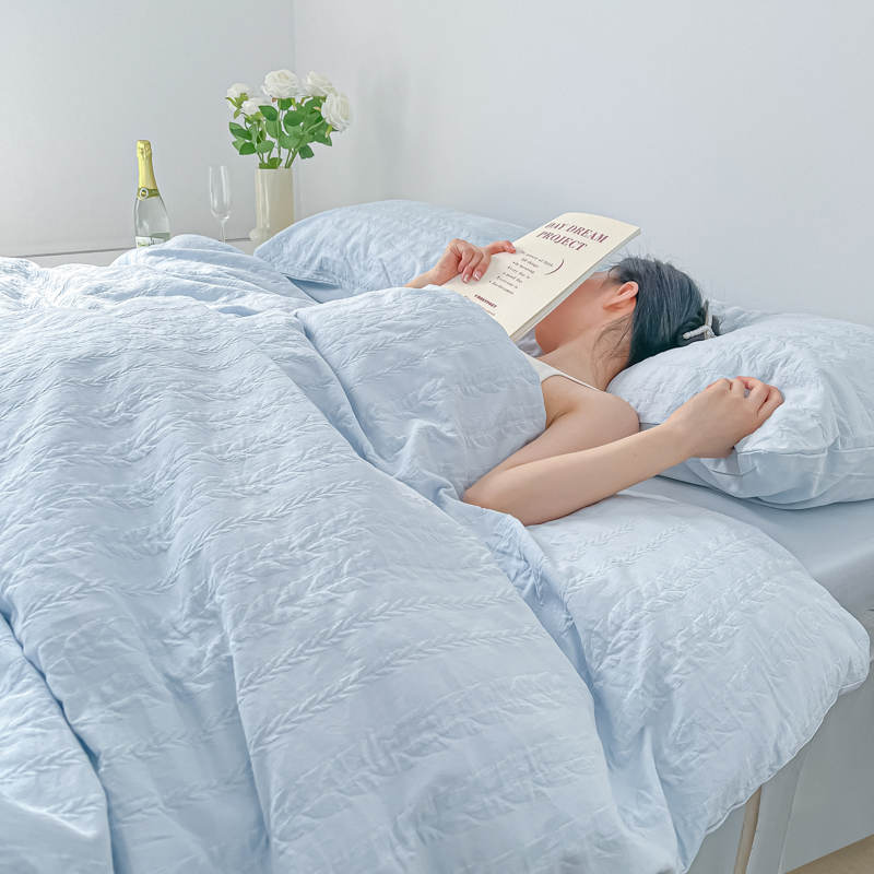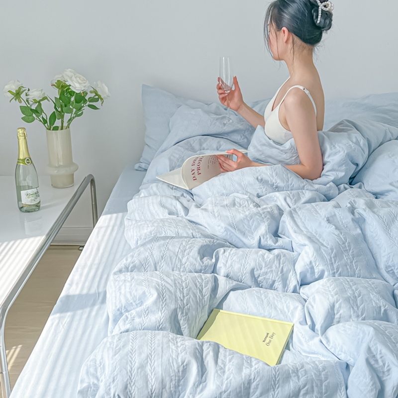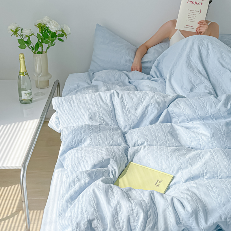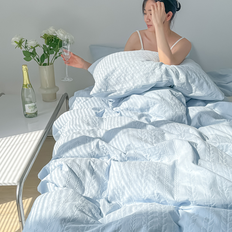 当前位置: 91家纺网 > 商品网购 > 床品套件 > 四件套 > 水洗棉四件套 > 盼季 2023新款小清新针织提花水洗棉麦穗床上四件套--风格一 麦穗-奶蓝