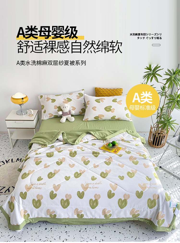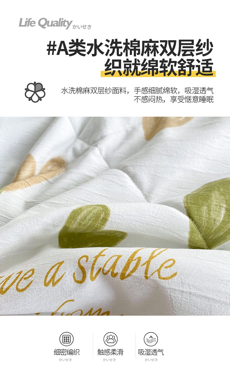 商品名称:(总)瑜珠 2025新款A类水洗棉麻双层纱夏凉被空调被子被芯夏被