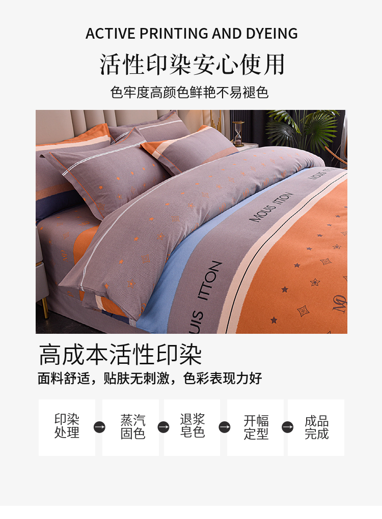 商品名称:橘姿 2023升级喷气全棉磨毛四件套纯棉四件套加厚直播 圣托里尼桔