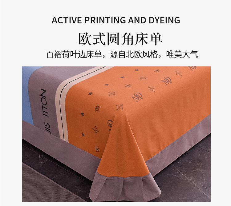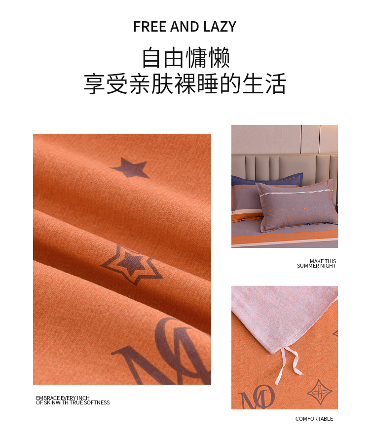 橘姿 2023升级喷气全棉磨毛四件套纯棉四件套加厚直播 圣托里尼桔