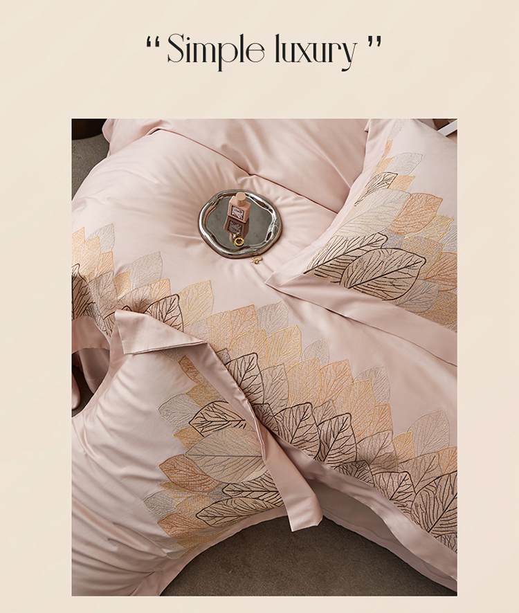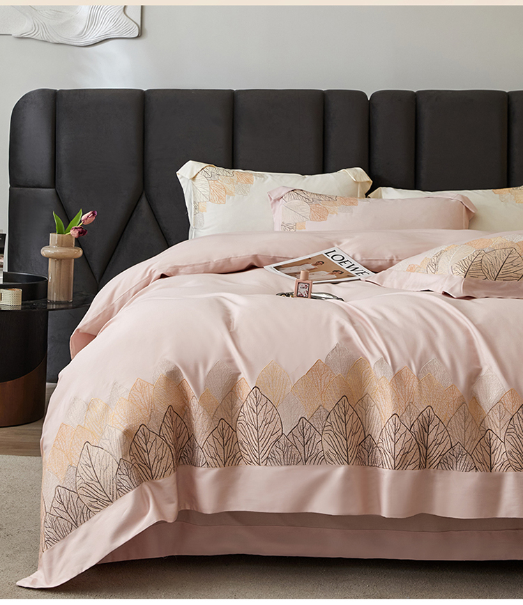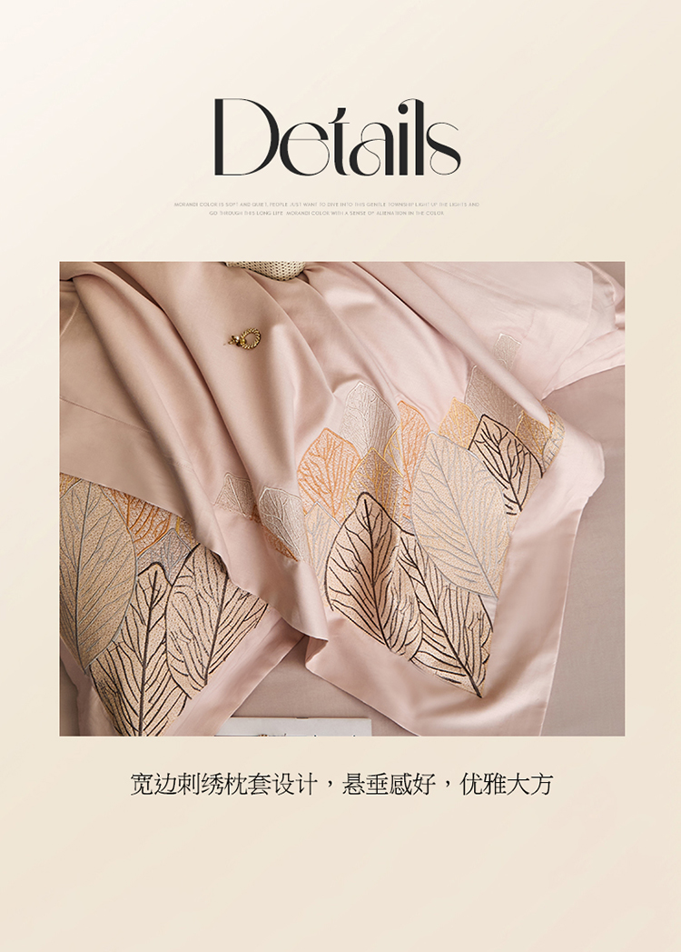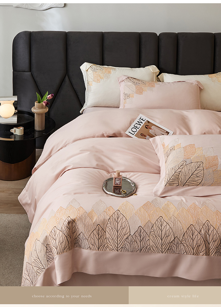 商品名称:名品优仓 高支高密长绒棉刺绣款四季可用四件套朵芮雅系列 朵芮雅一马卡粉