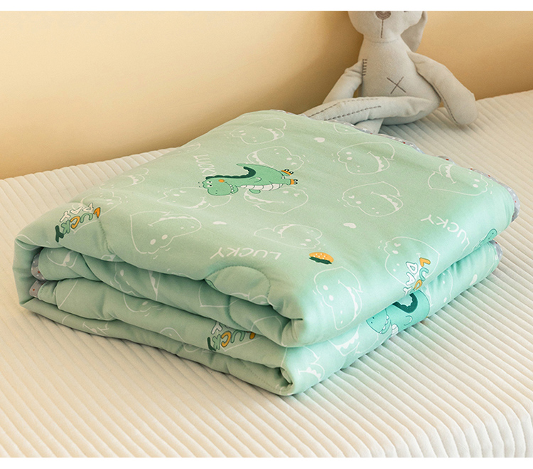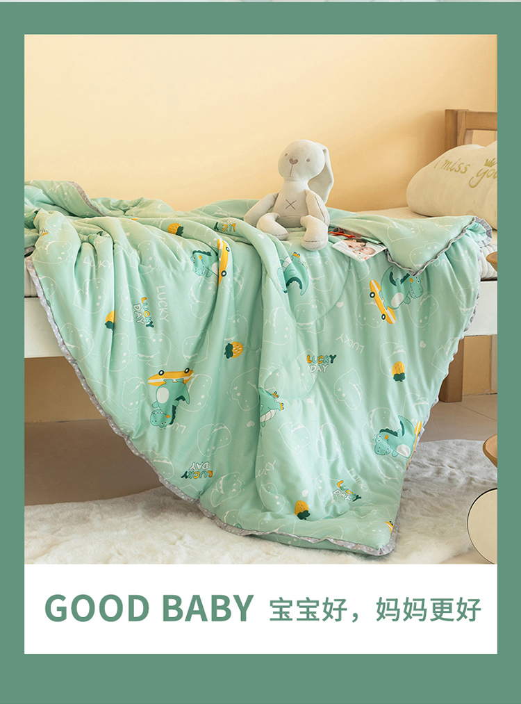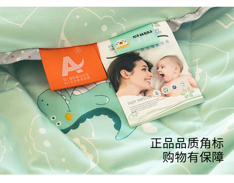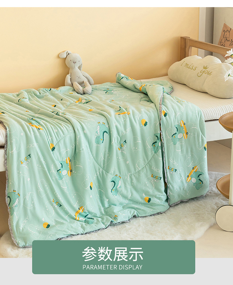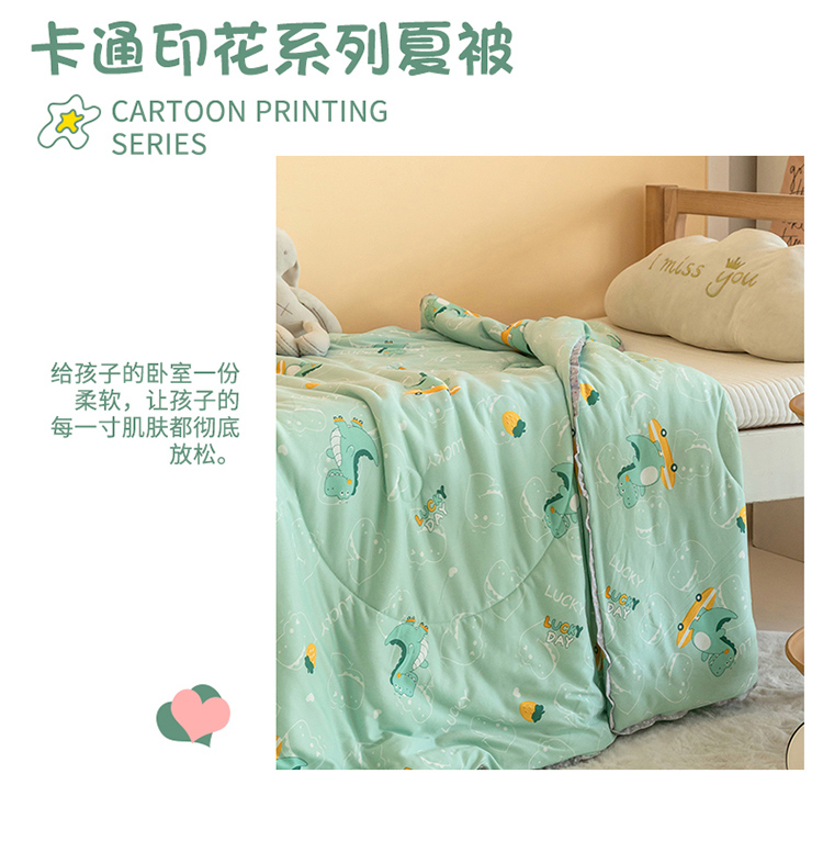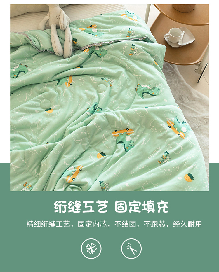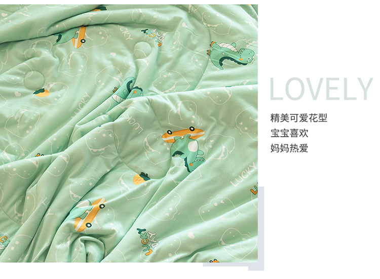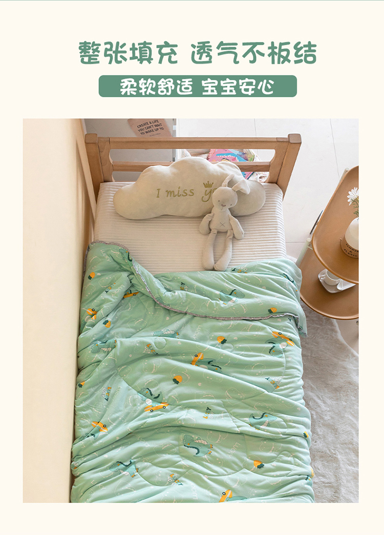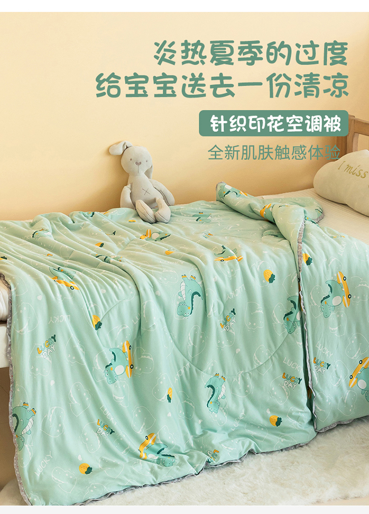 喜多兔儿童家纺 2023年新款针织棉空调被 绿色滑板恐龙