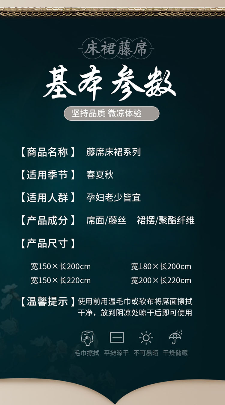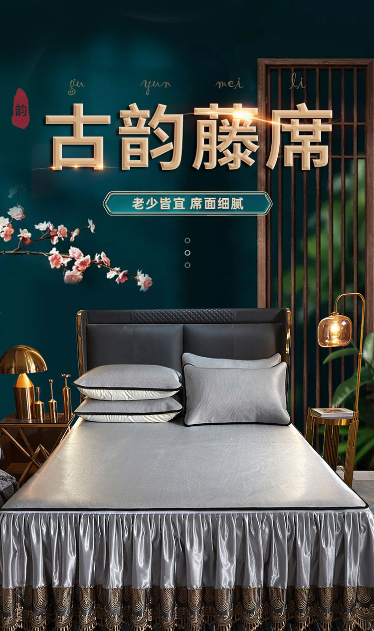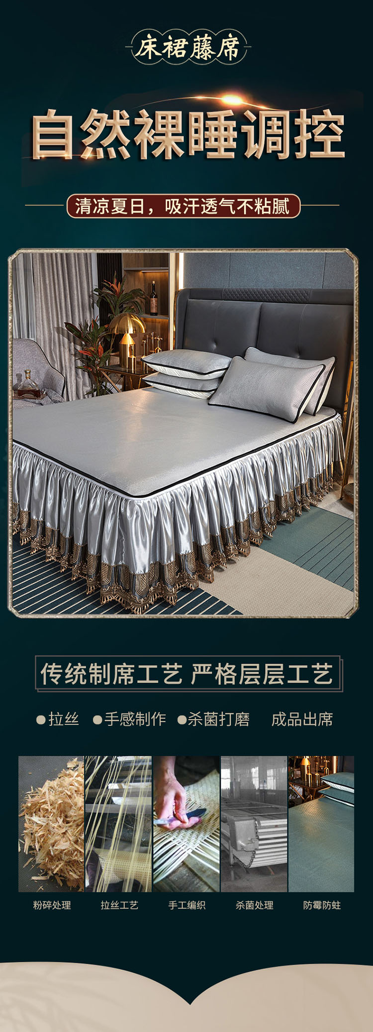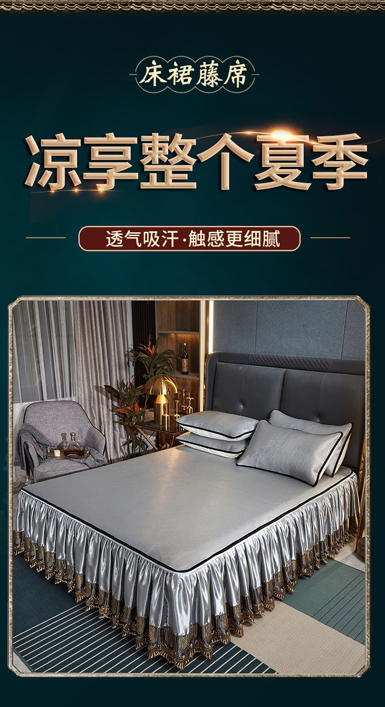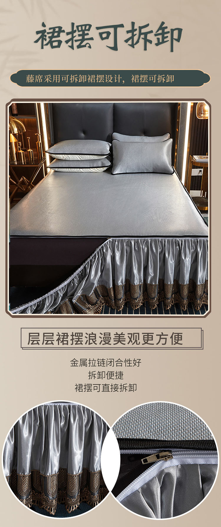 商品名称:恋尚 2024新款冰藤软凉席床裙款三件套(可脱卸) 欧雅-绅灰