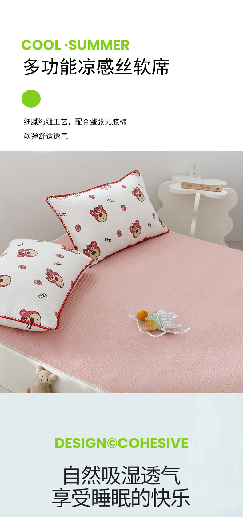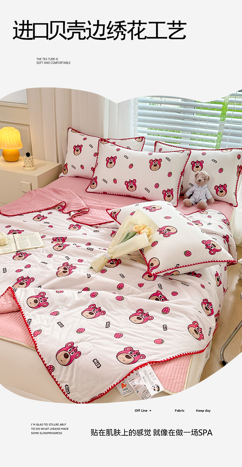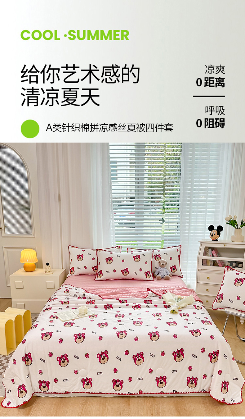 当前位置: 91家纺网 > 商品网购 > 床上用品 > 凉席 > 凉席套件 > 花漾 2024新款A类针织棉凉感丝夏被凉席四件套自然光 快乐小熊