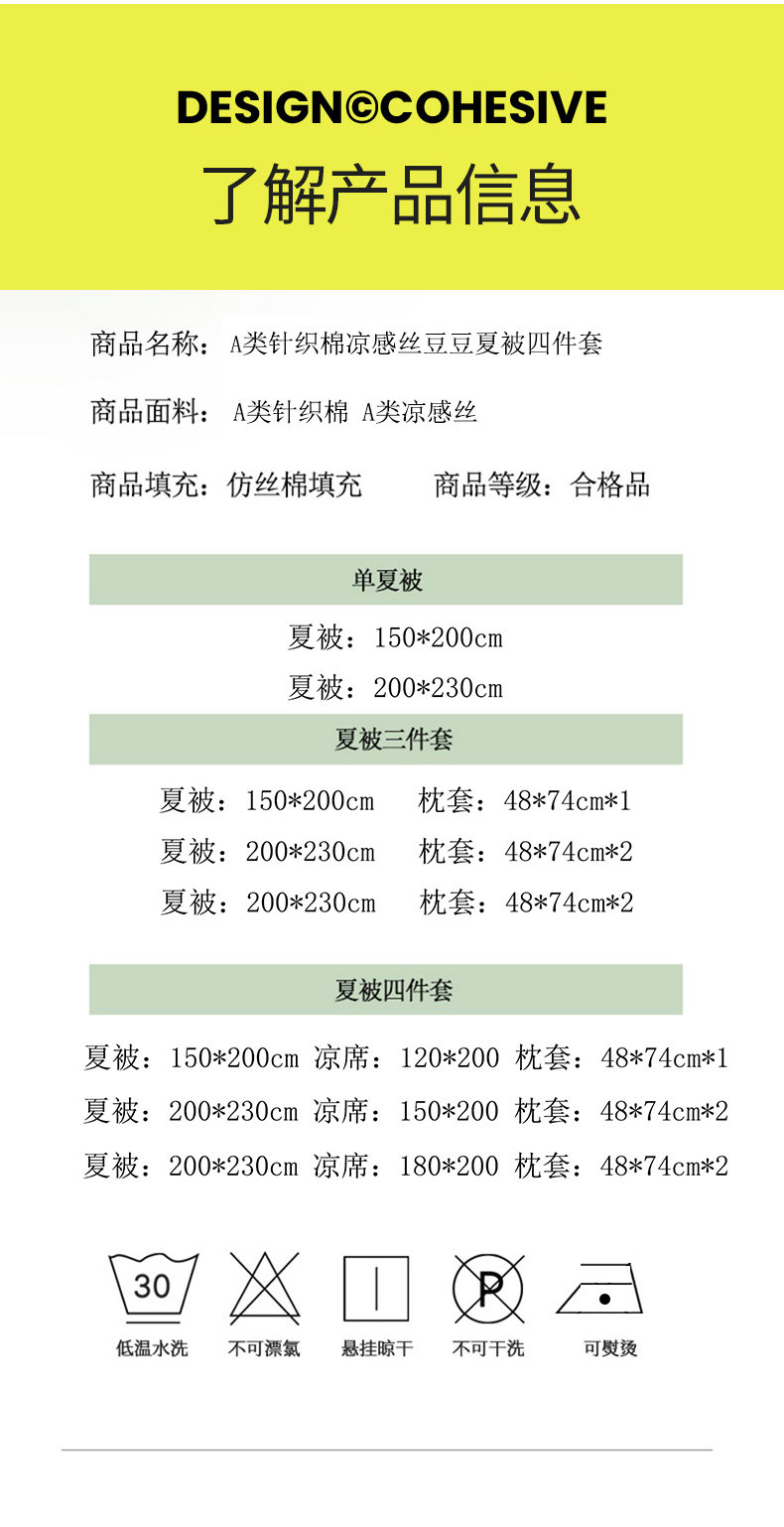 150*200cm 夏被四件套 | ¥105.00 |