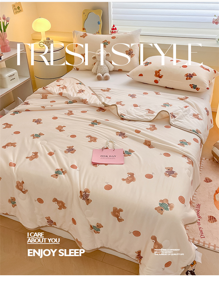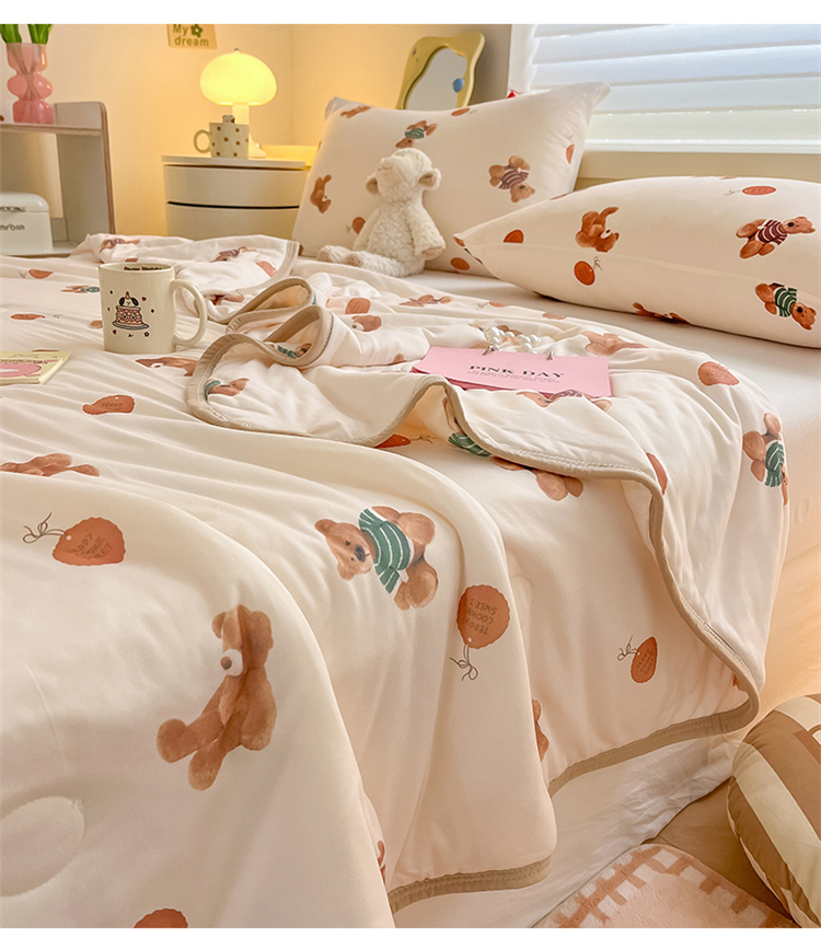 (总)桃子 2023新款A类ins高品质小清新花卉卡通牛奶丝针织棉夏被
