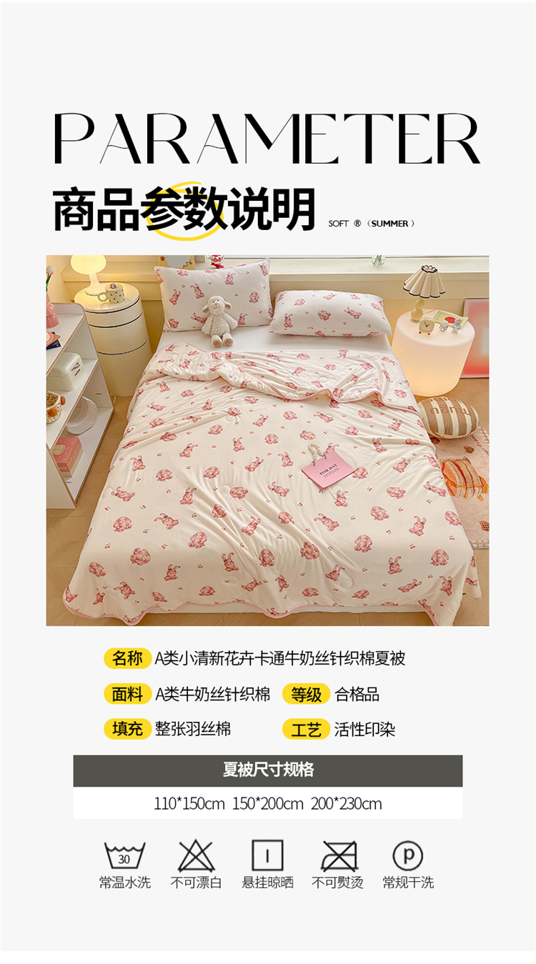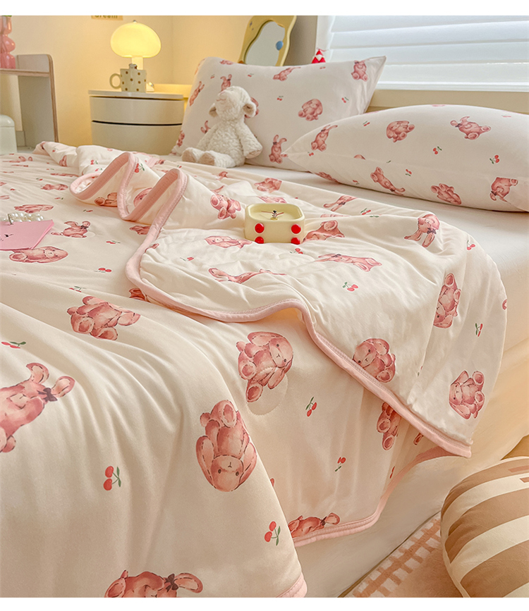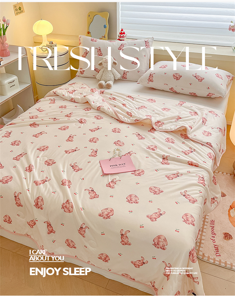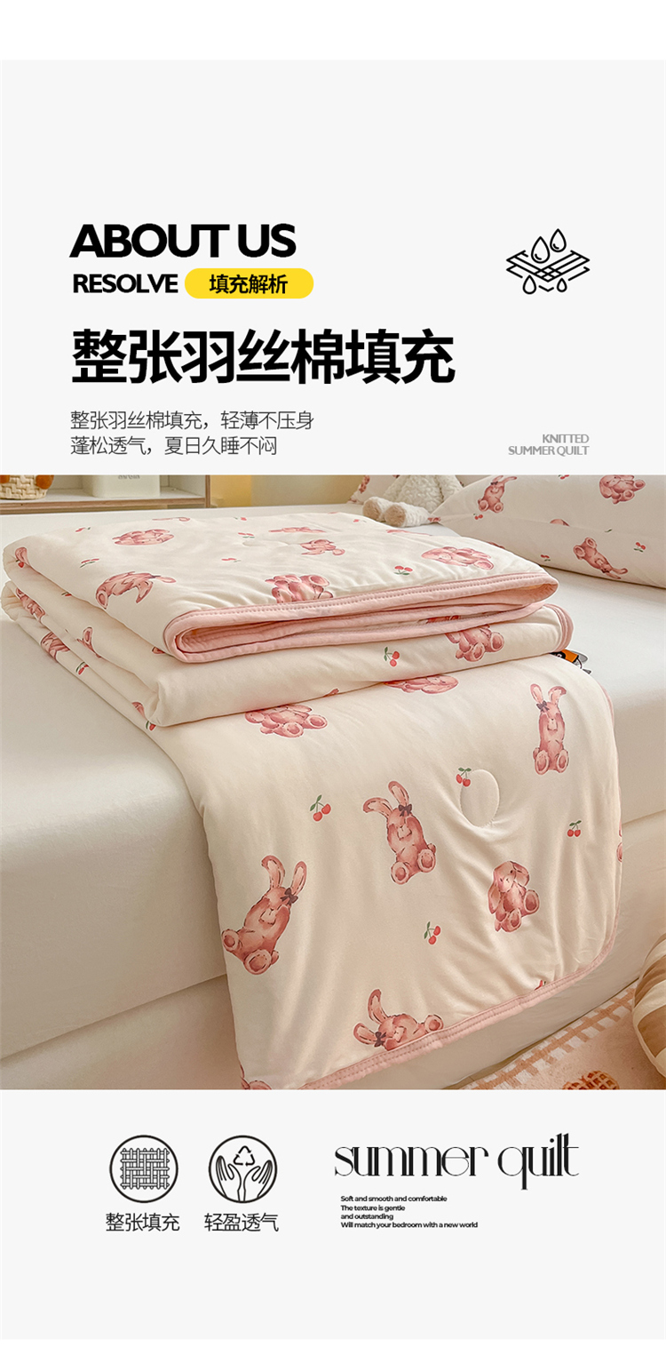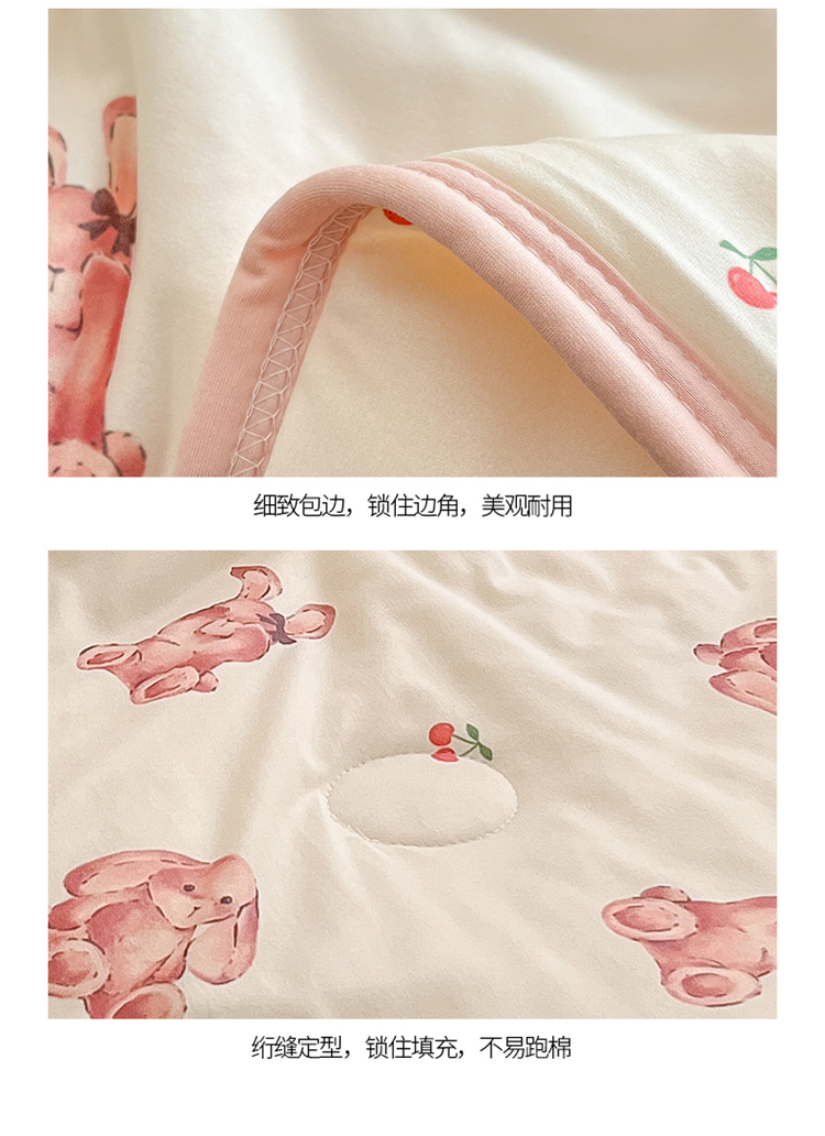 • 91家纺网 家纺一手货源 找家纺 桃子 2023新款A类ins高品质小清新花卉卡通牛奶丝针织棉夏被 针织棉夏被-樱桃奶油兔