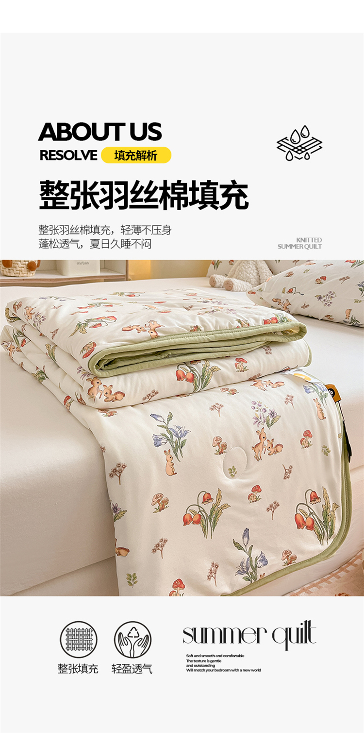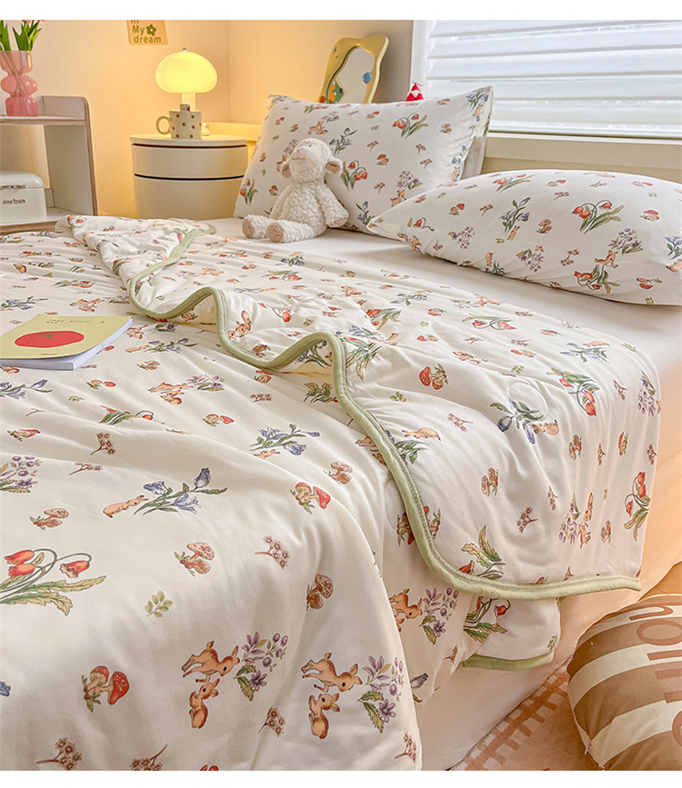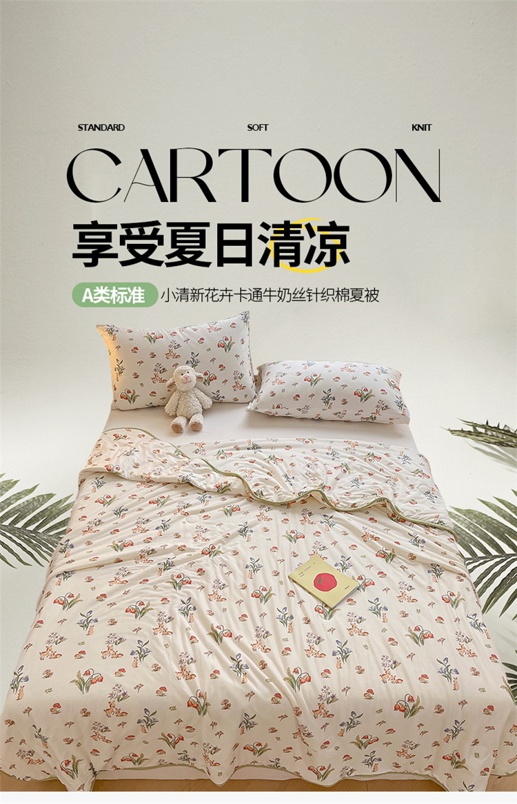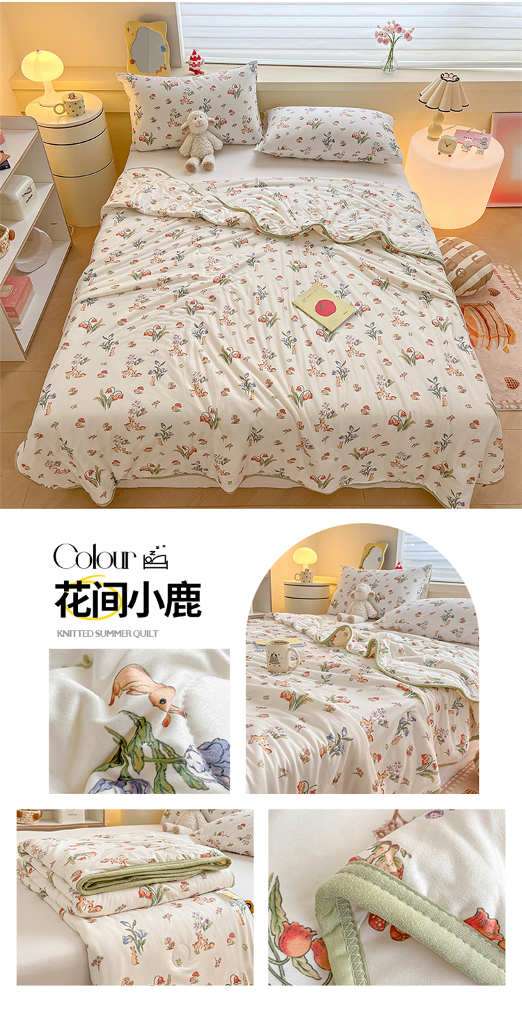 • 91家纺网 家纺一手货源 找家纺 桃子 2023新款A类ins高品质小清新花卉卡通牛奶丝针织棉夏被 针织棉夏被-花间小鹿