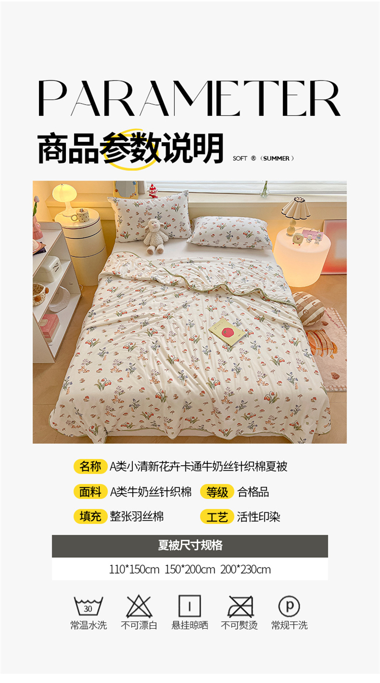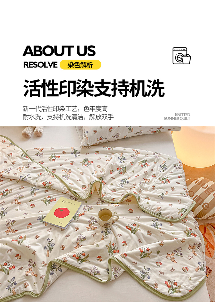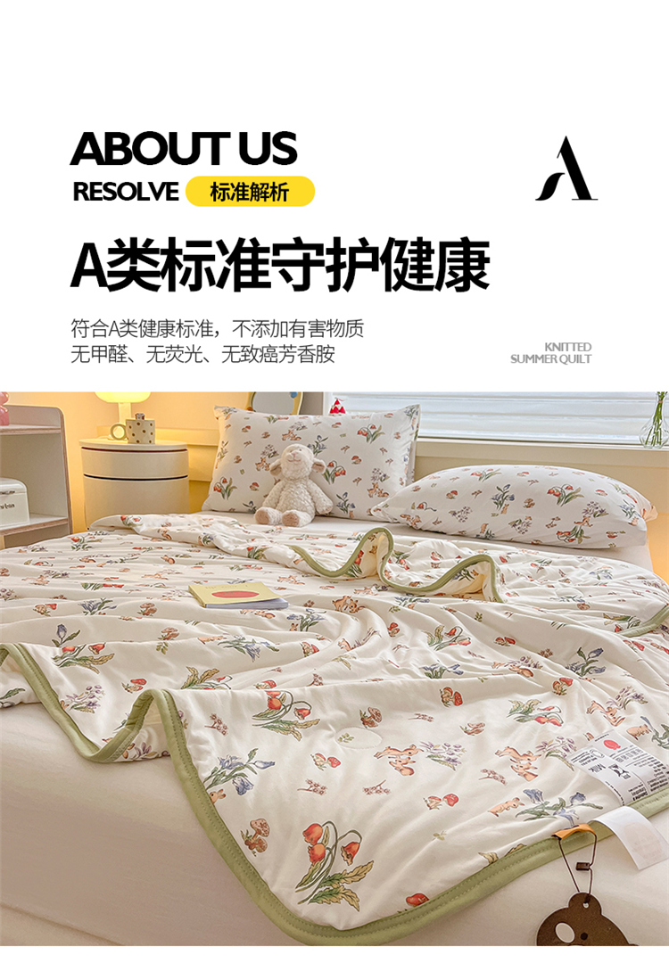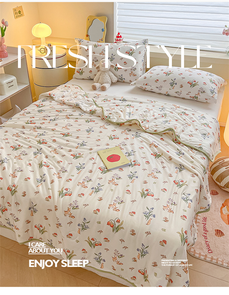 • 91家纺网 家纺一手货源 找家纺 桃子 2023新款A类ins高品质小清新花卉卡通牛奶丝针织棉夏被 针织棉夏被-花间小鹿