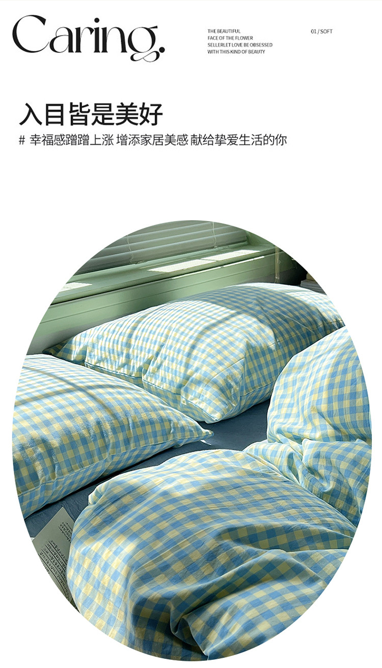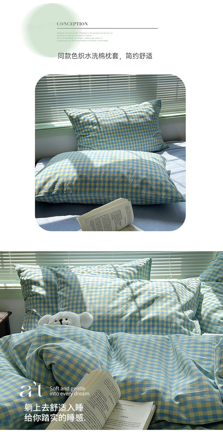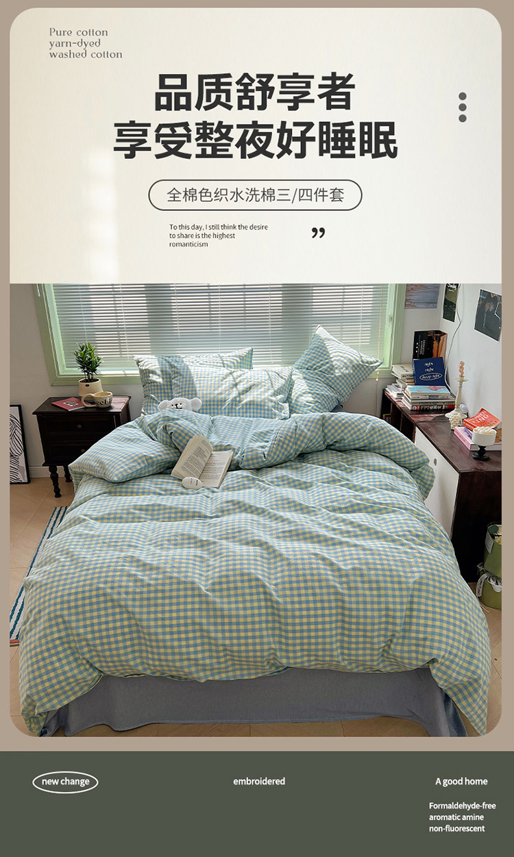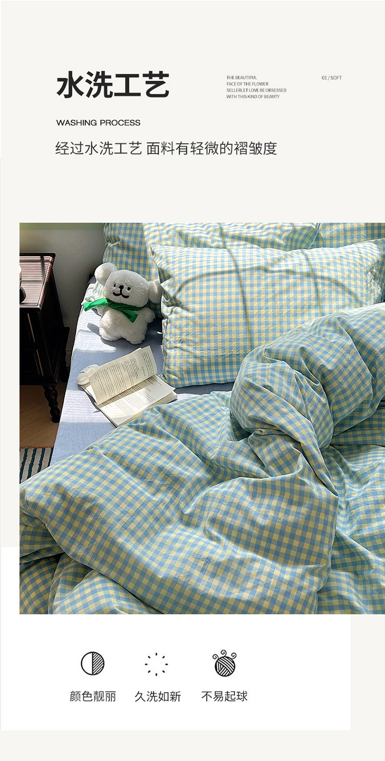 当前位置: 91家纺网 > 商品网购 > 床品套件 > 四件套 > 全棉普通四件套 > 新款 全棉色织水洗棉四件套纯棉宿舍三件套 杰西卡蓝