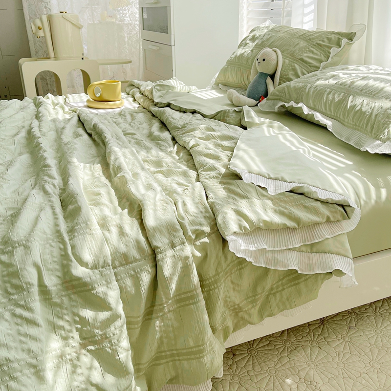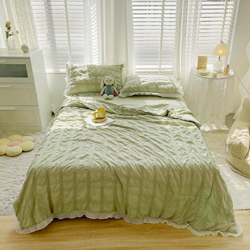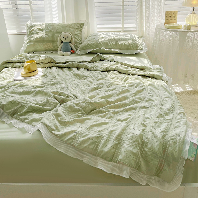 蓝冰家纺 2023新款泡泡纱夏被三件套 湖水蓝