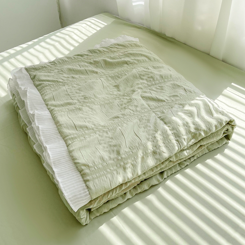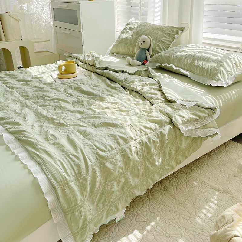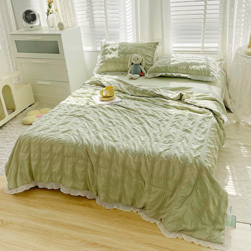 当前位置: 91家纺网 > 商品网购 > 被子 > 夏被 > 蓝冰家纺 2023新款泡泡纱夏被三件套 湖水蓝