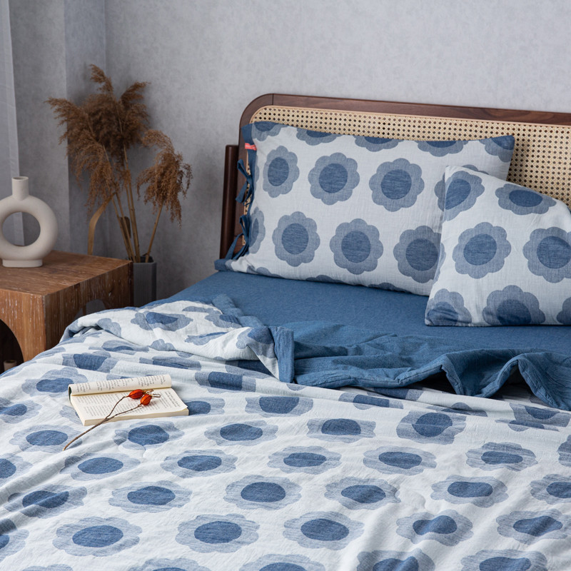 商品名称:安莱生活 2023新款 太阳花夏被四件套及单独夏被 太阳花-深蓝