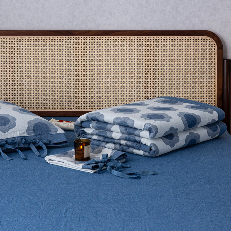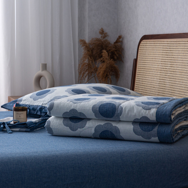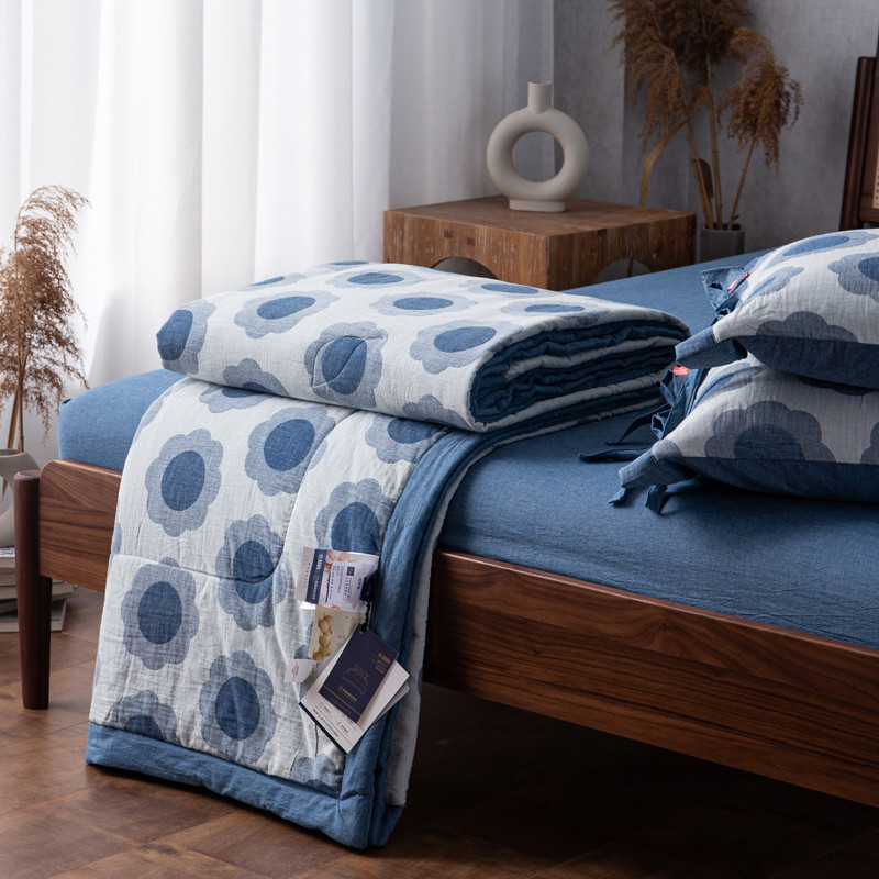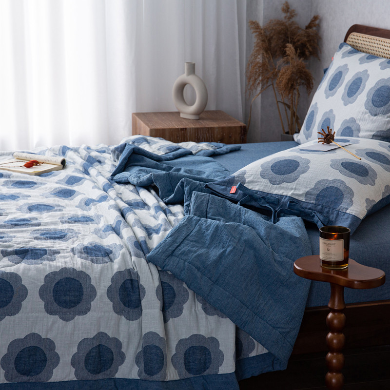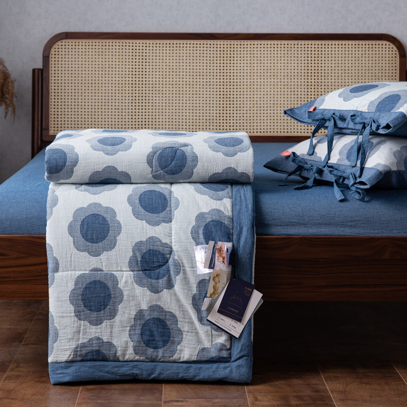 安莱生活 2023新款 太阳花夏被四件套及单独夏被 太阳花-深蓝
