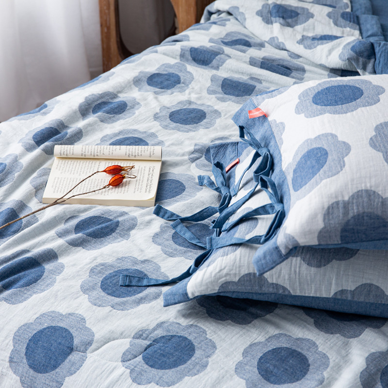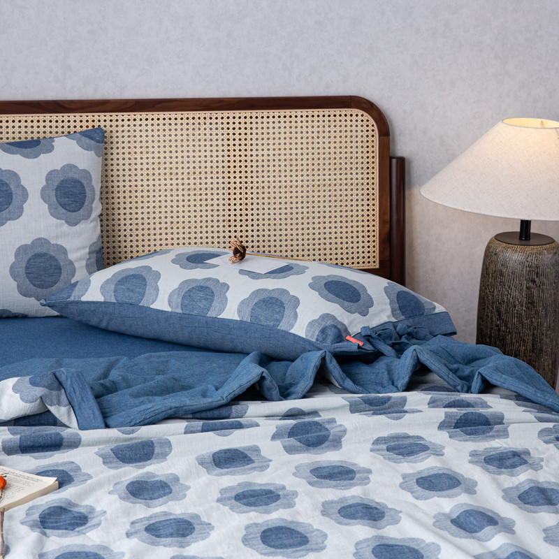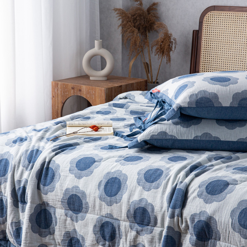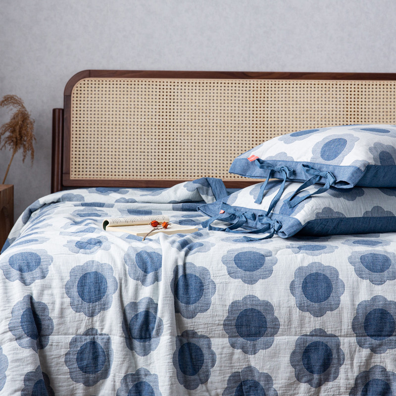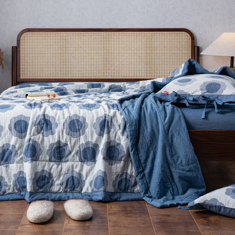 安莱生活 2023新款 太阳花夏被四件套及单独夏被 太阳花-深蓝