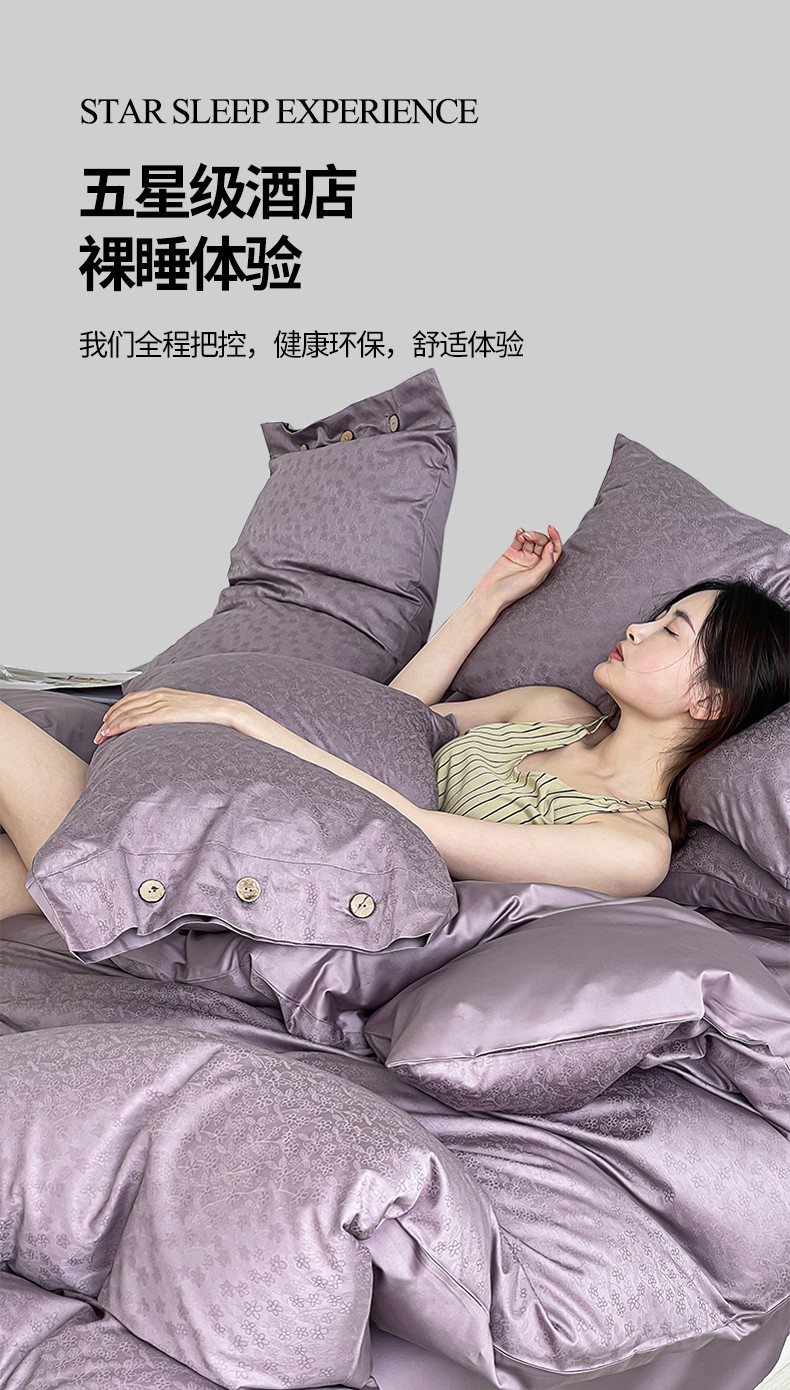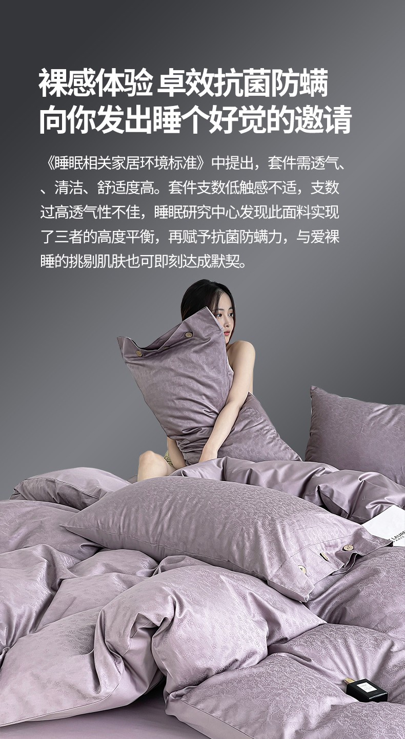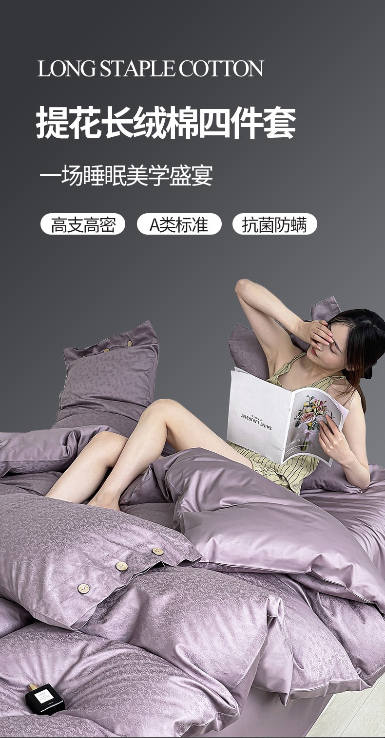 商品名称:米奈家居 2024新款100S抗菌防螨提花长绒棉四件套 冷艳紫