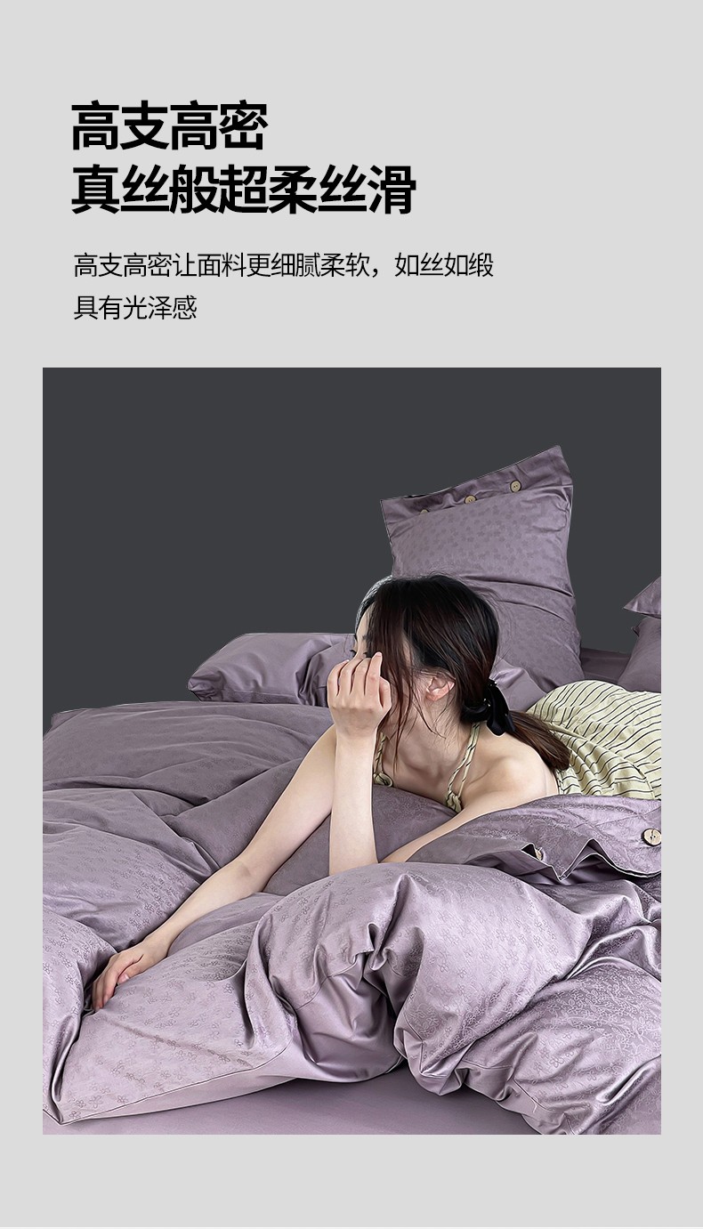 米奈家居 2024新款100S抗菌防螨提花长绒棉四件套 冷艳紫