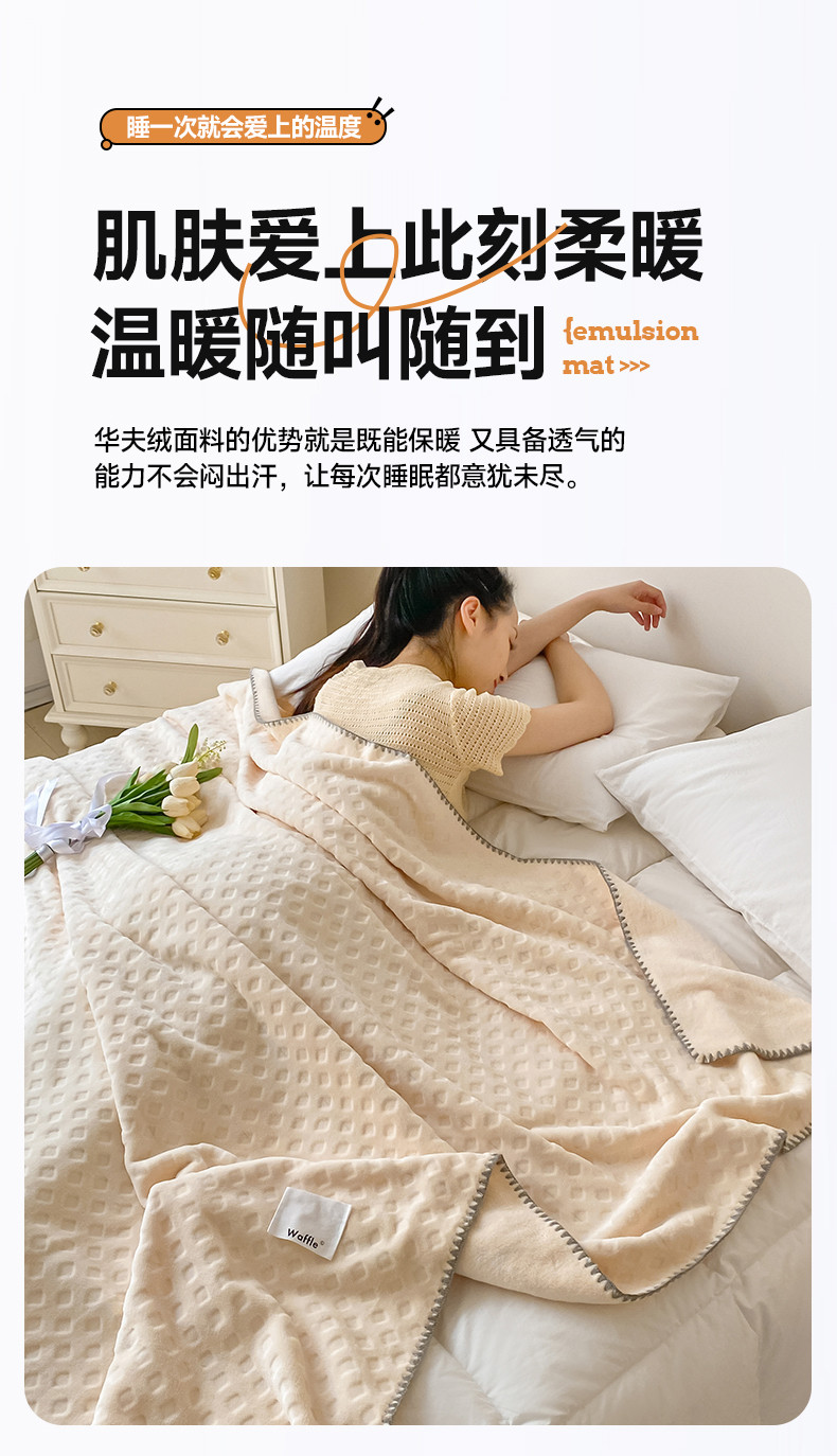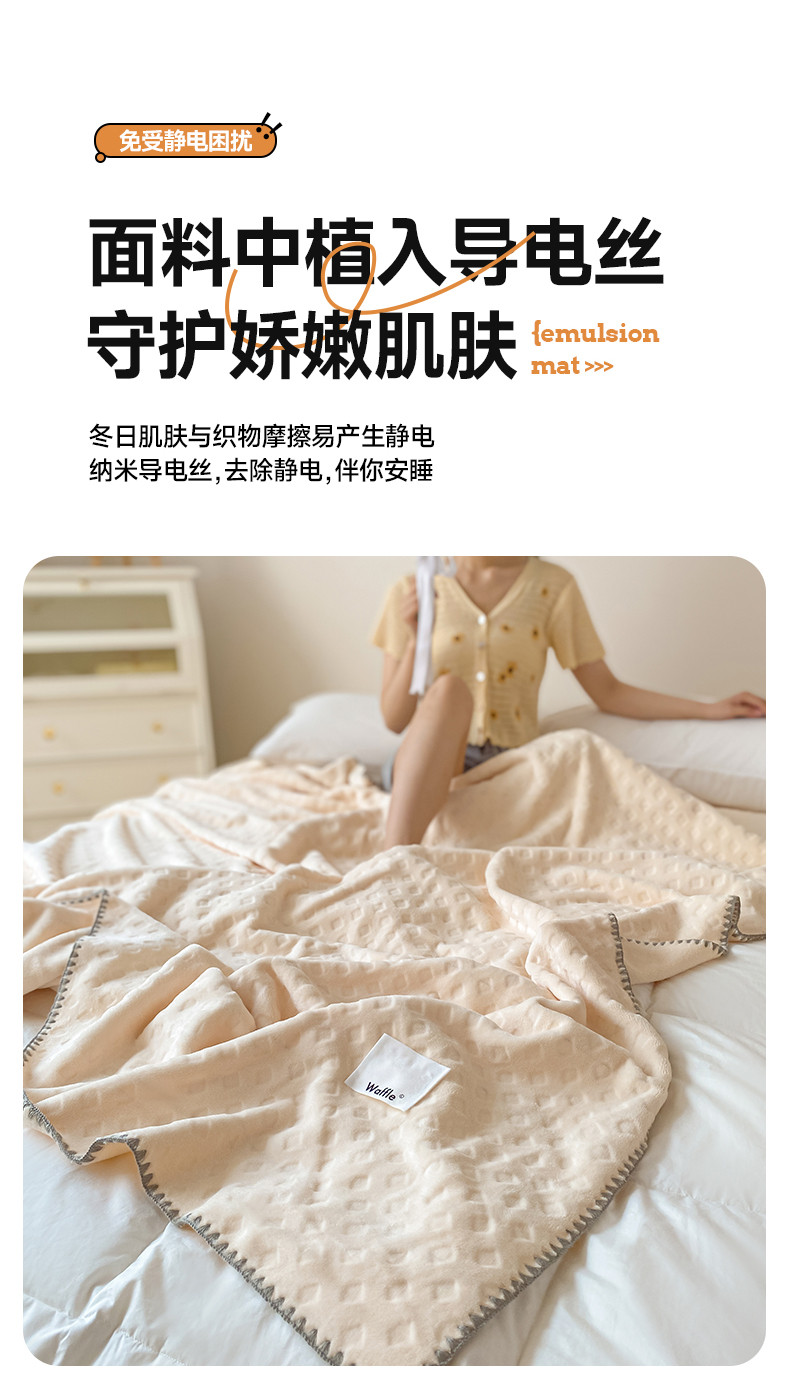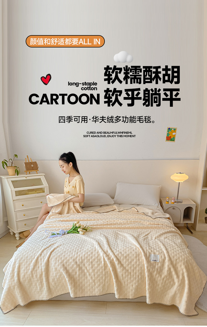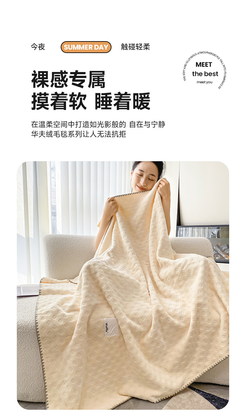 商品名称:艾佳软糯撸猫毯夏被毯四季空调毯华芙绒毛毯子双层复合毯 奶酪白