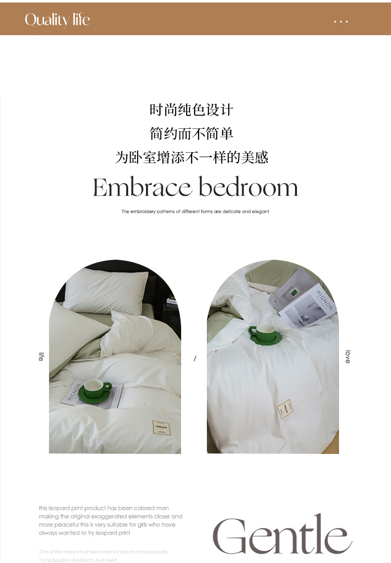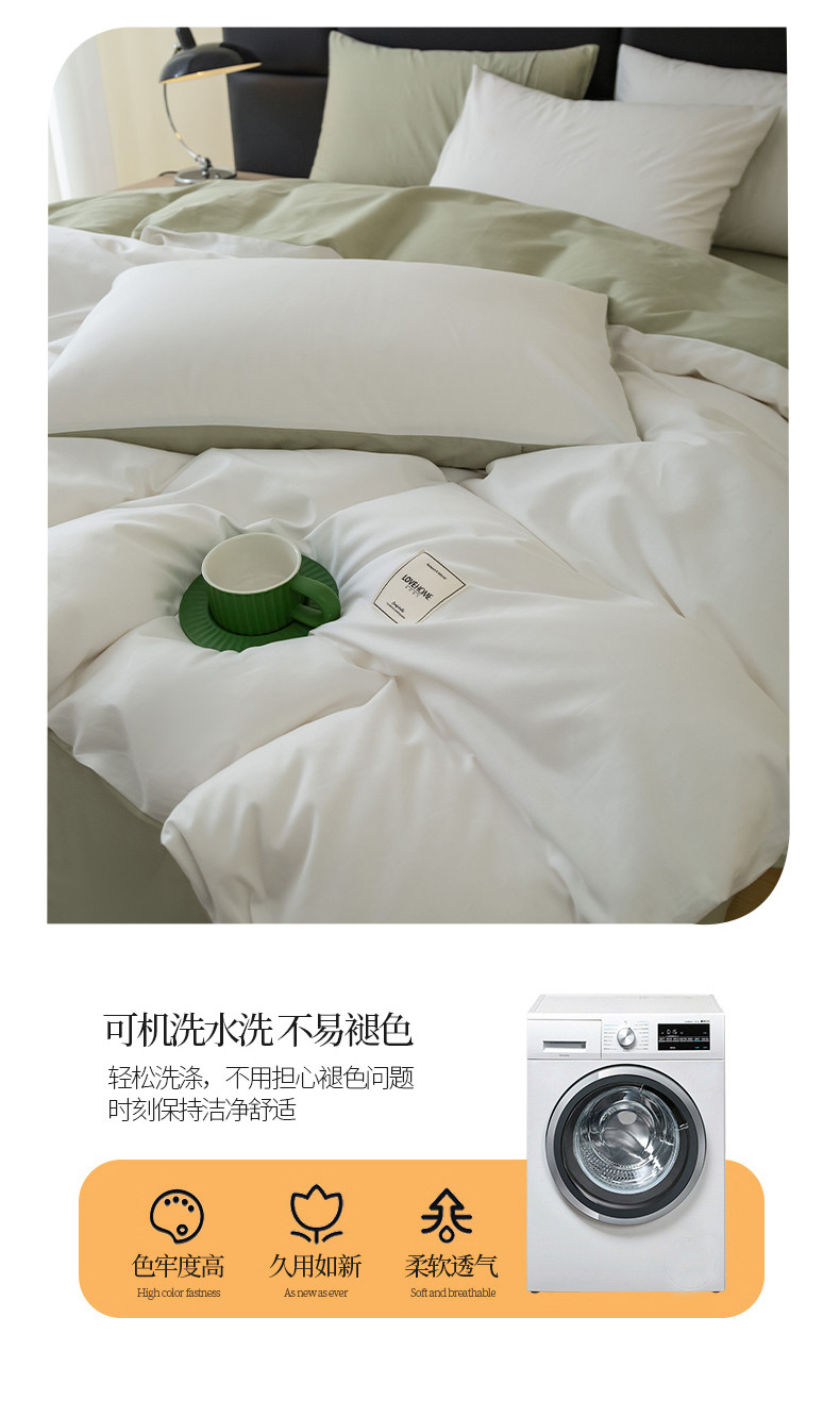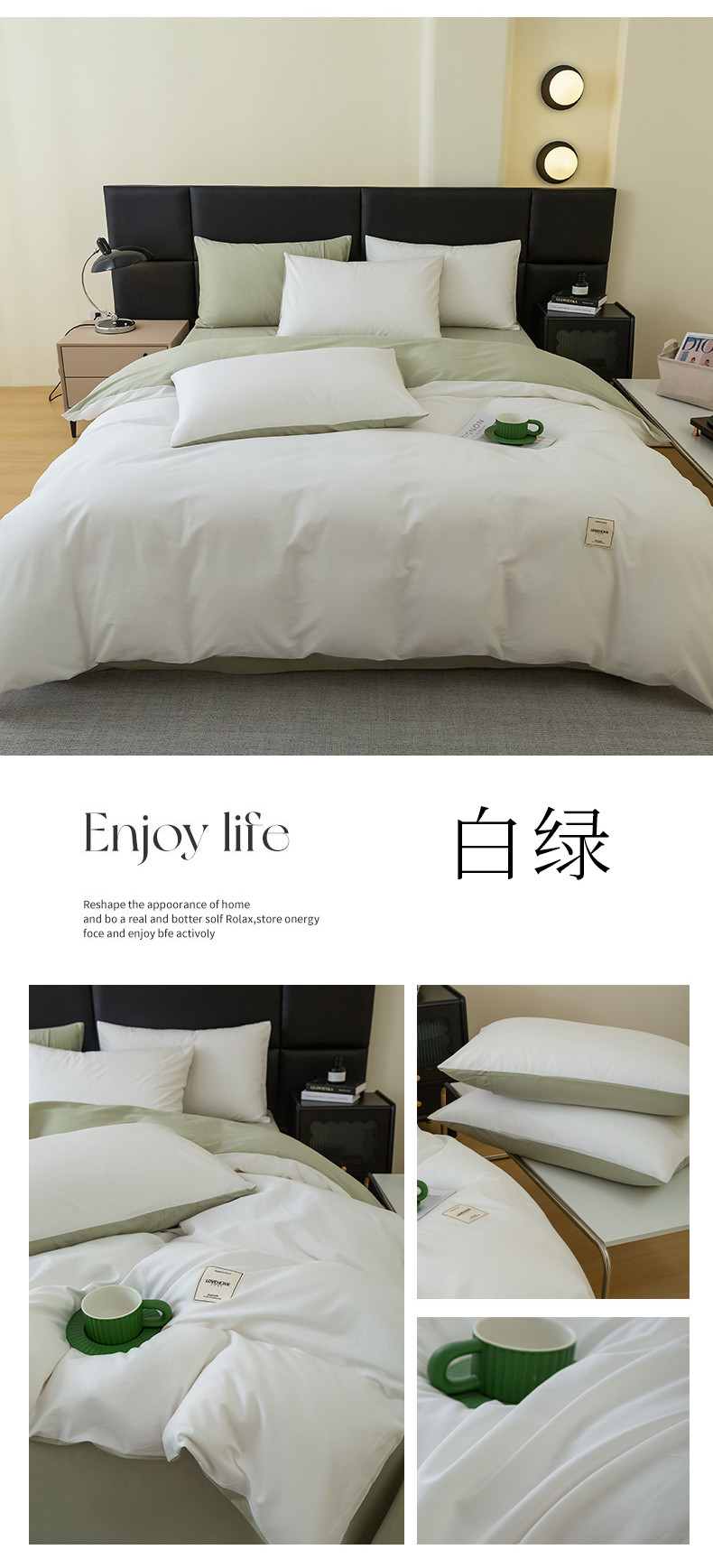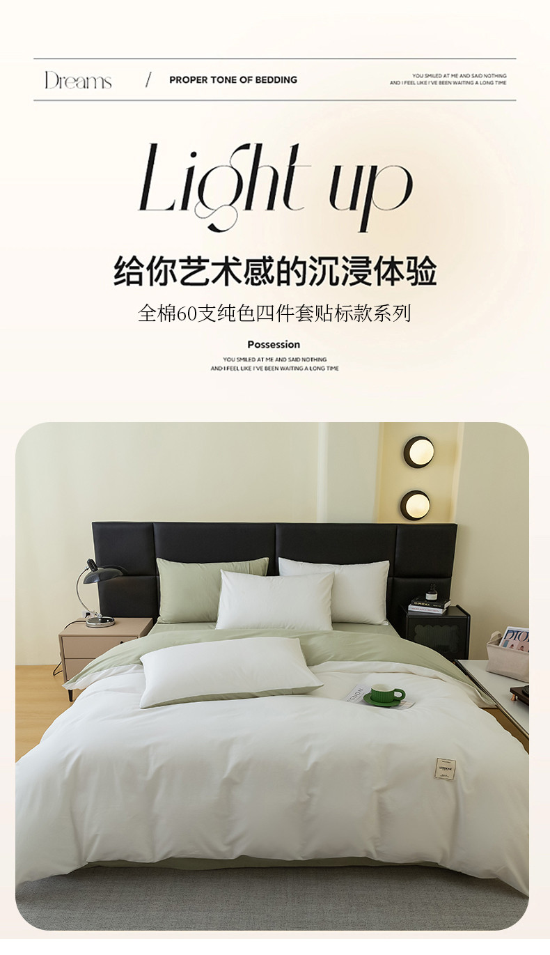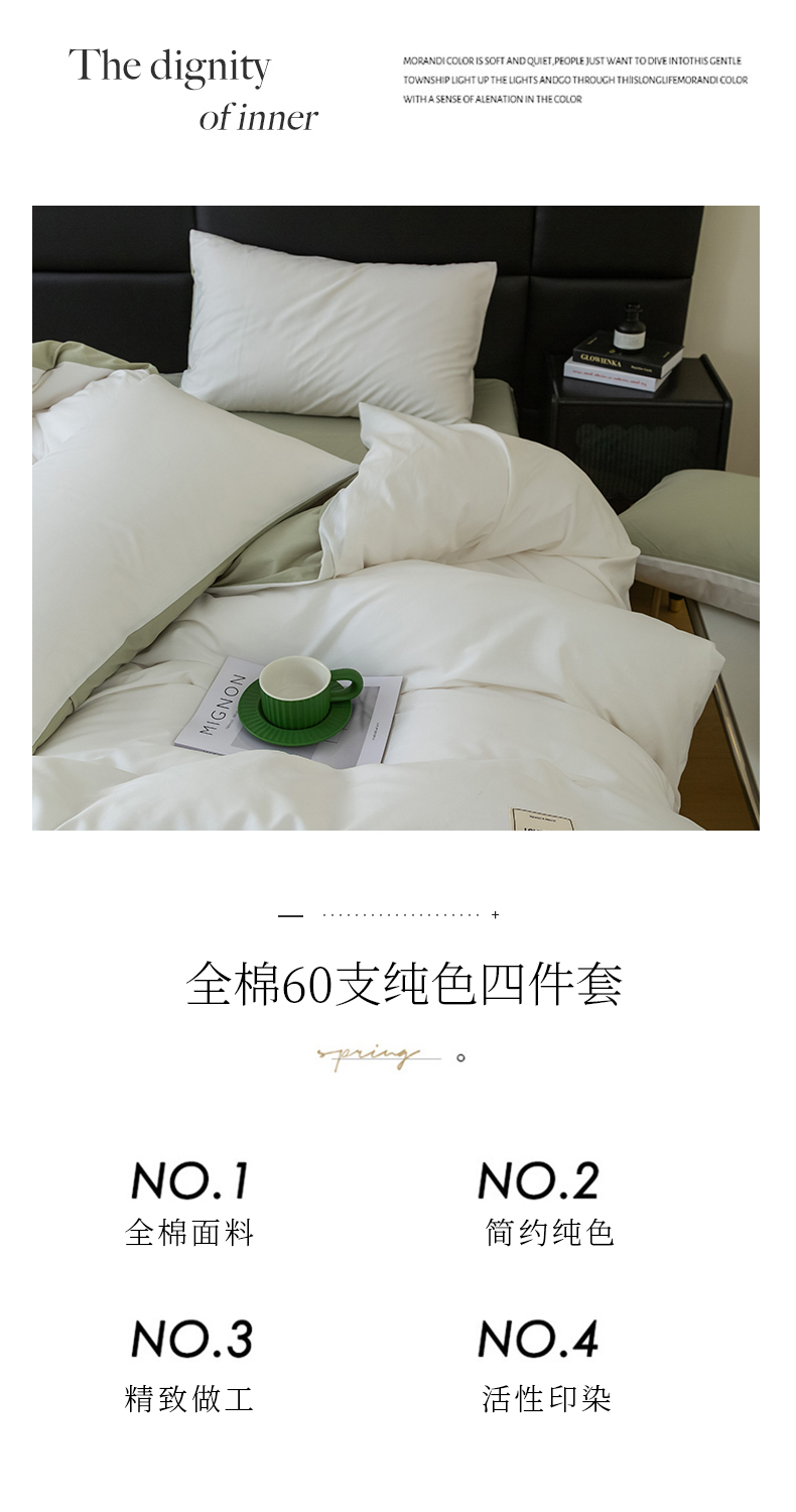 商品名称:N先生 2025新款全棉60支纯色四件套贴标款 白绿