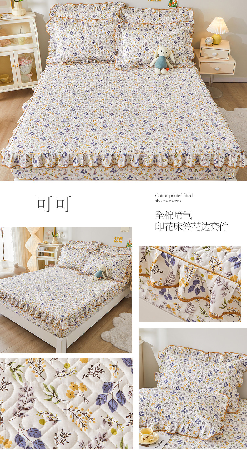 商品名称:宜凡 2023新款全棉印花床笠三件套 可可