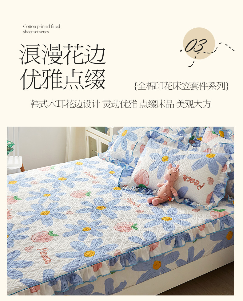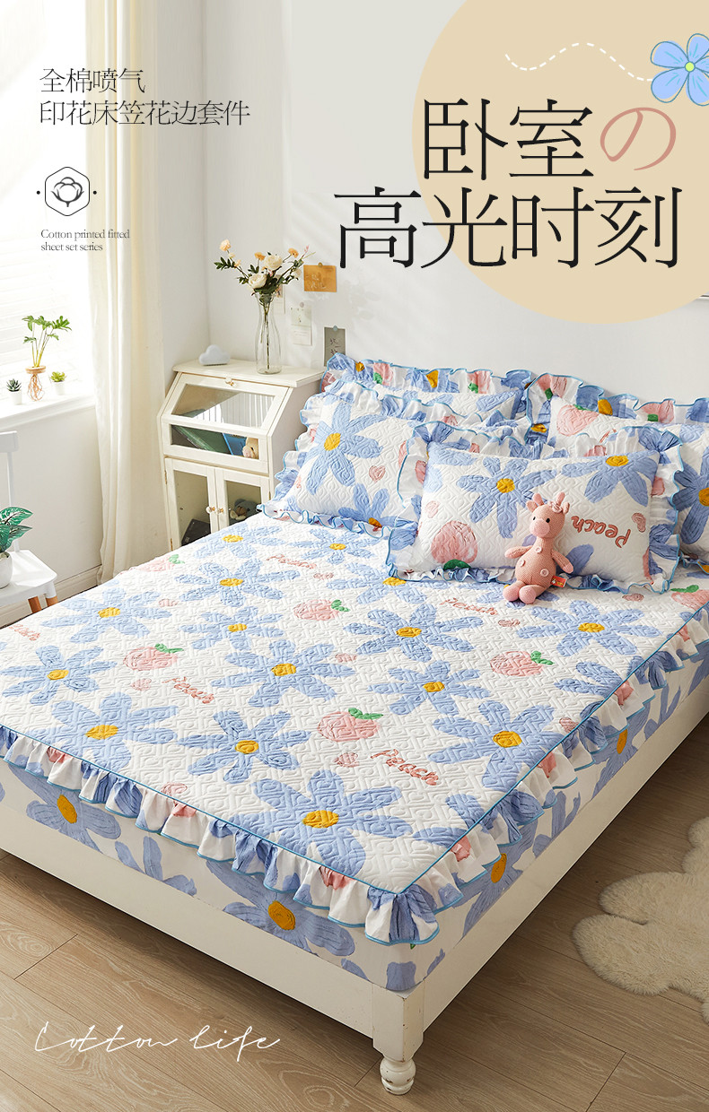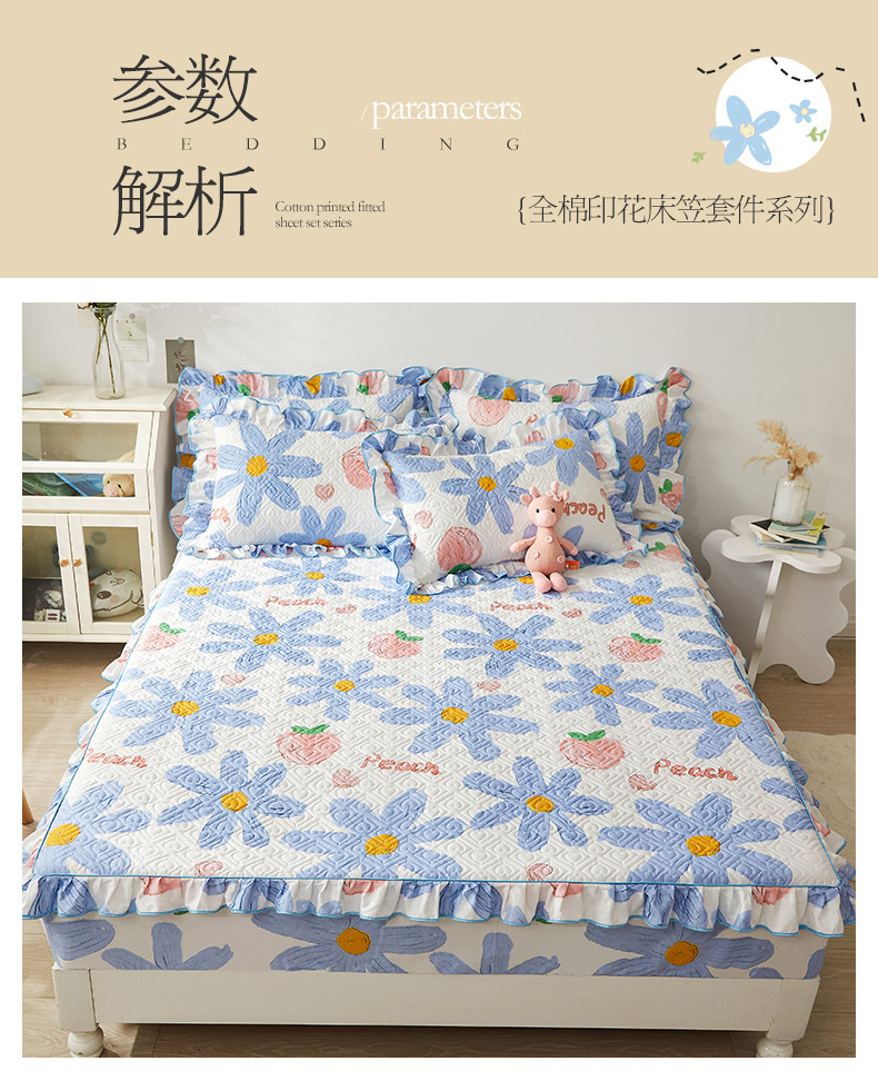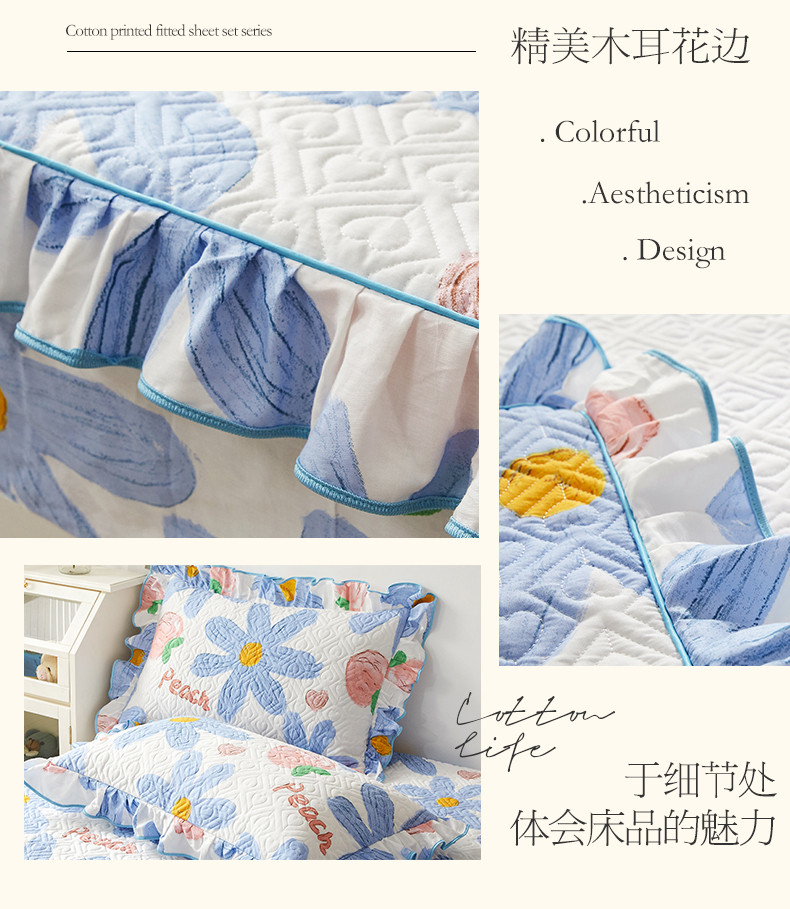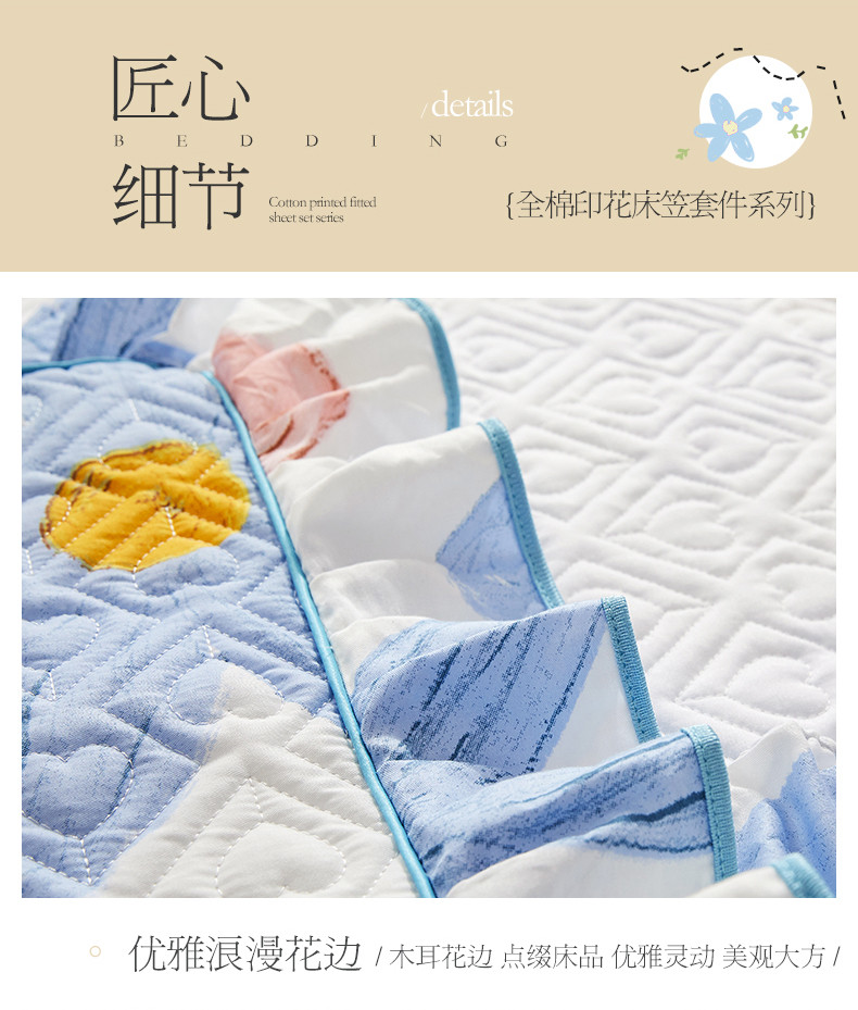 商品名称:宜凡 2023新款全棉印花床笠三件套 静待花开蓝