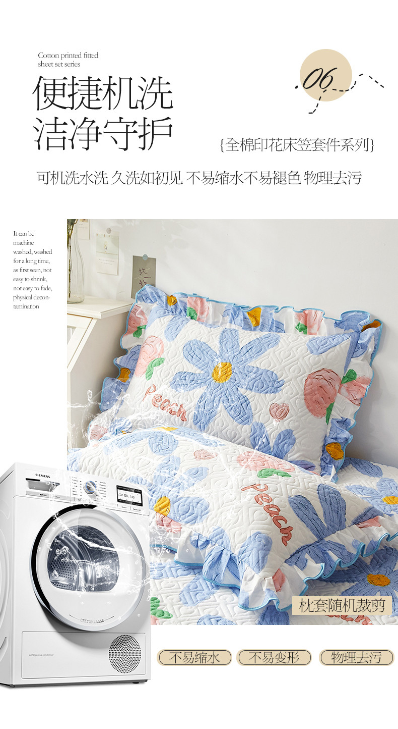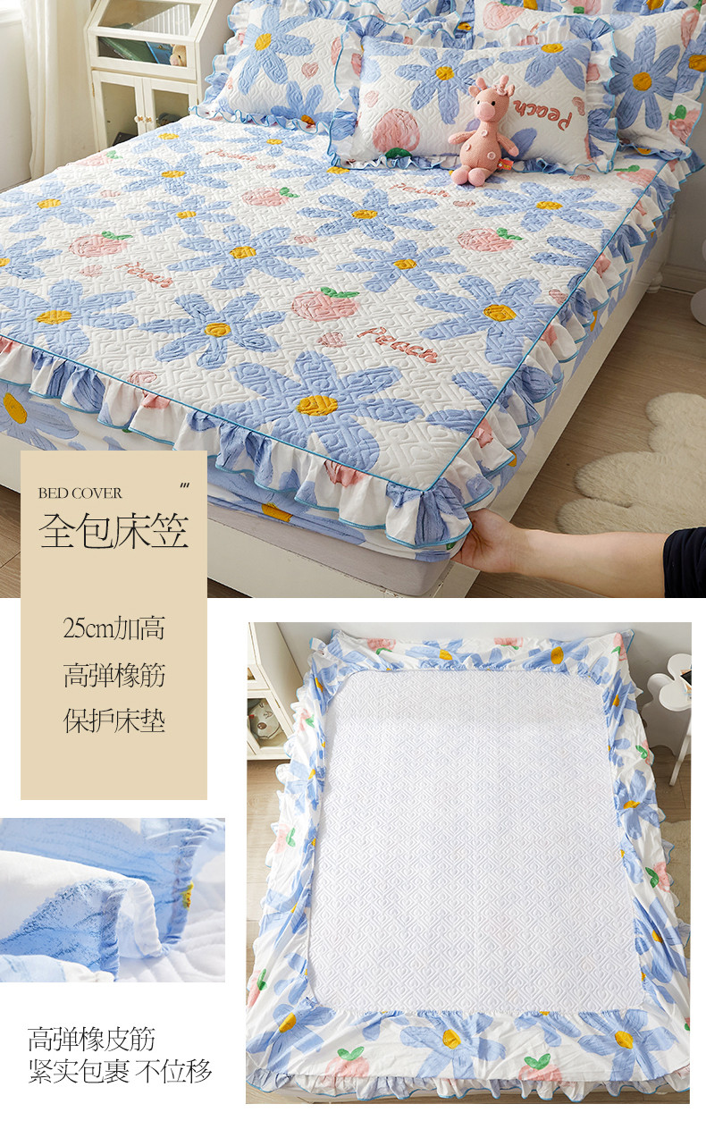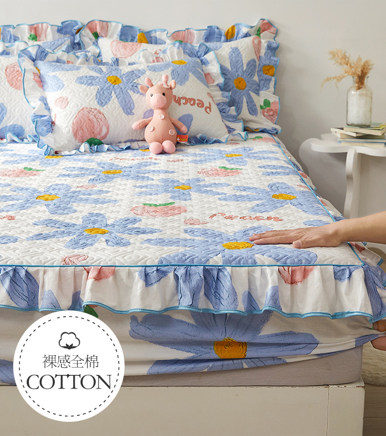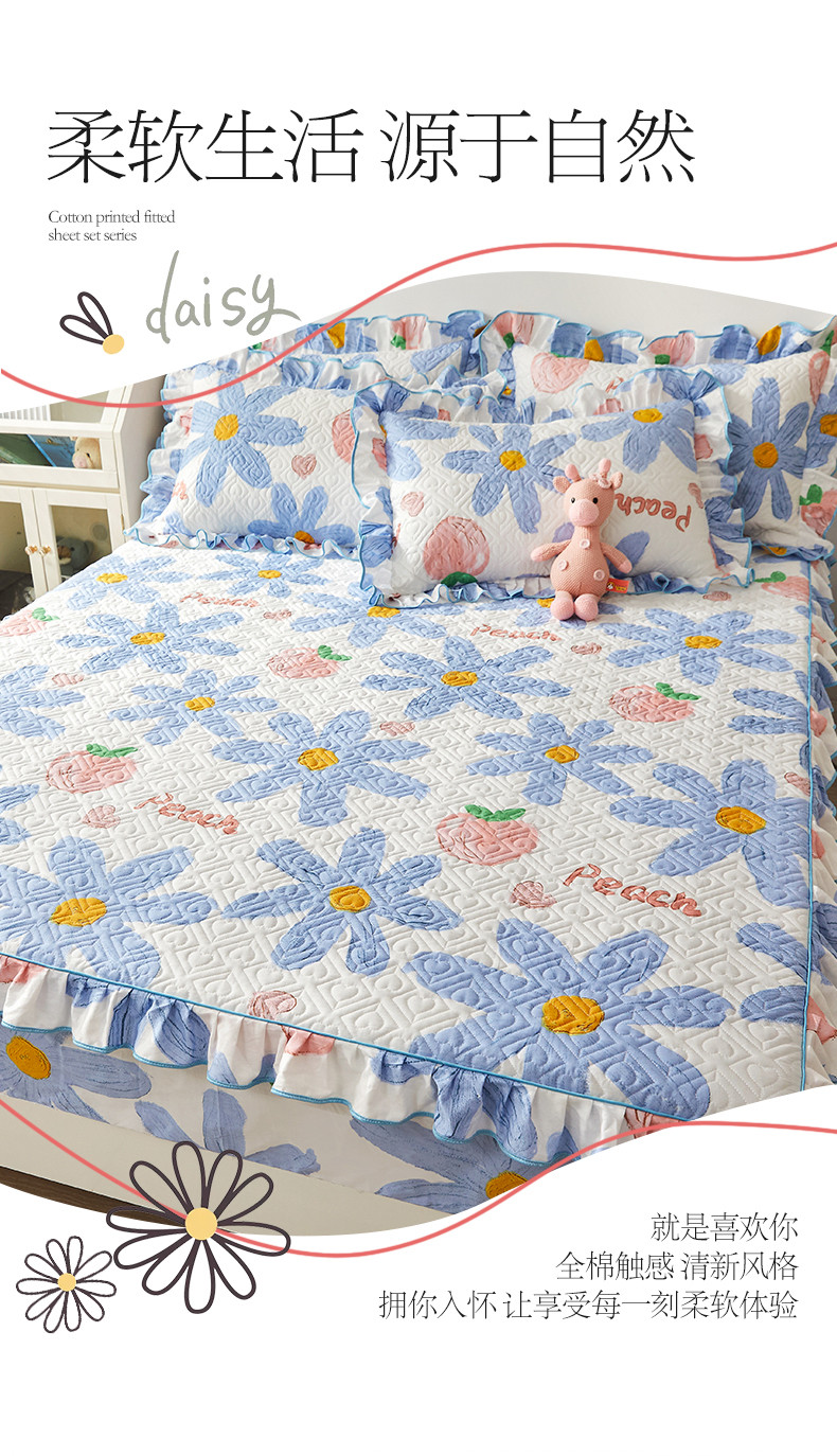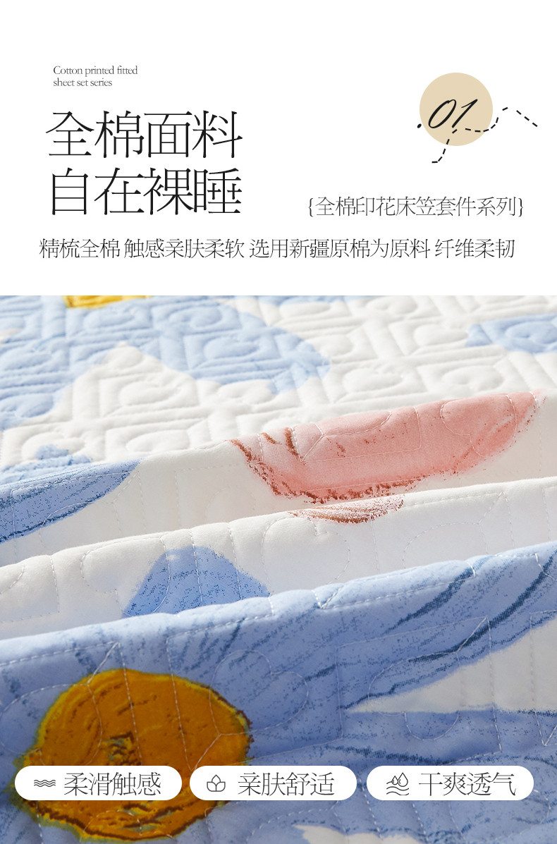 商品名称:宜凡 2023新款全棉印花床笠三件套 静待花开蓝