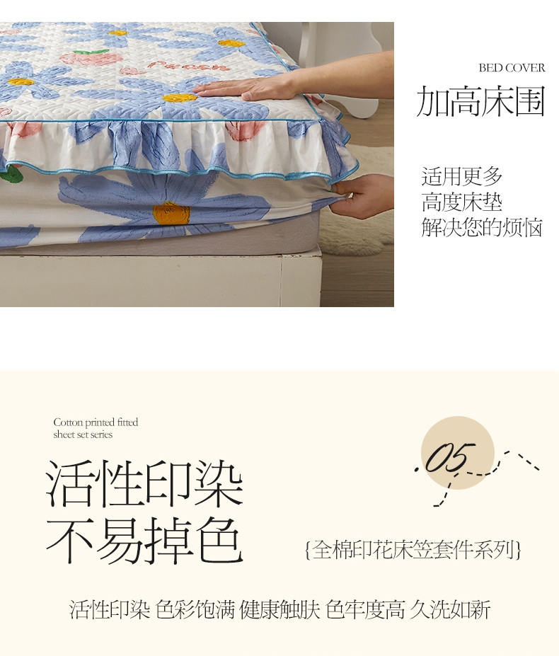(总)宜凡家纺 2025新款全棉数码印花床裙三件套系列一,静若幽兰,浮云织梦,梦幻花园,陌上花开