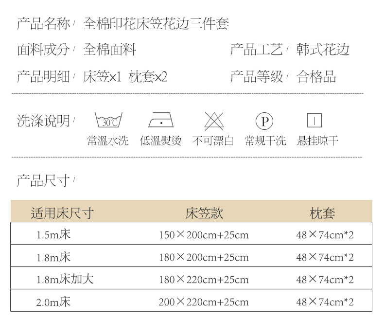 150*200cm床笠三件套