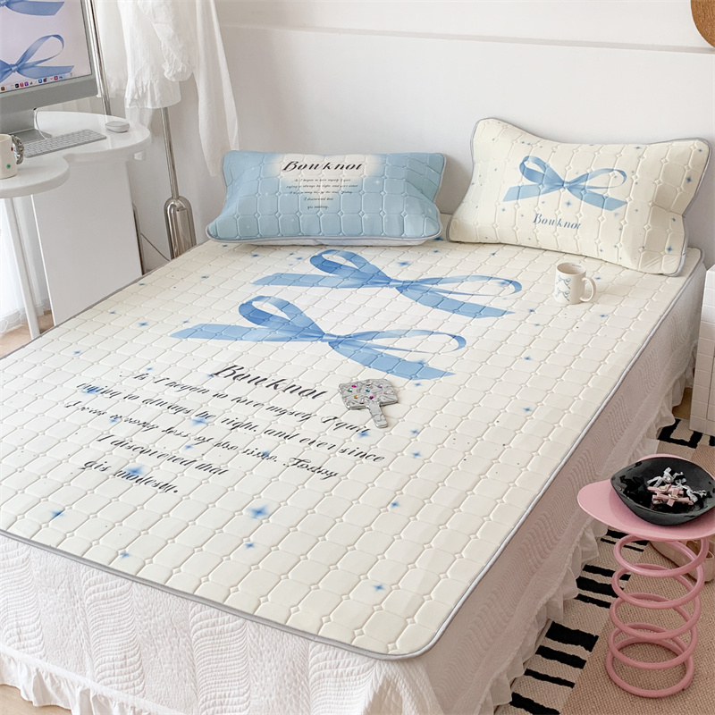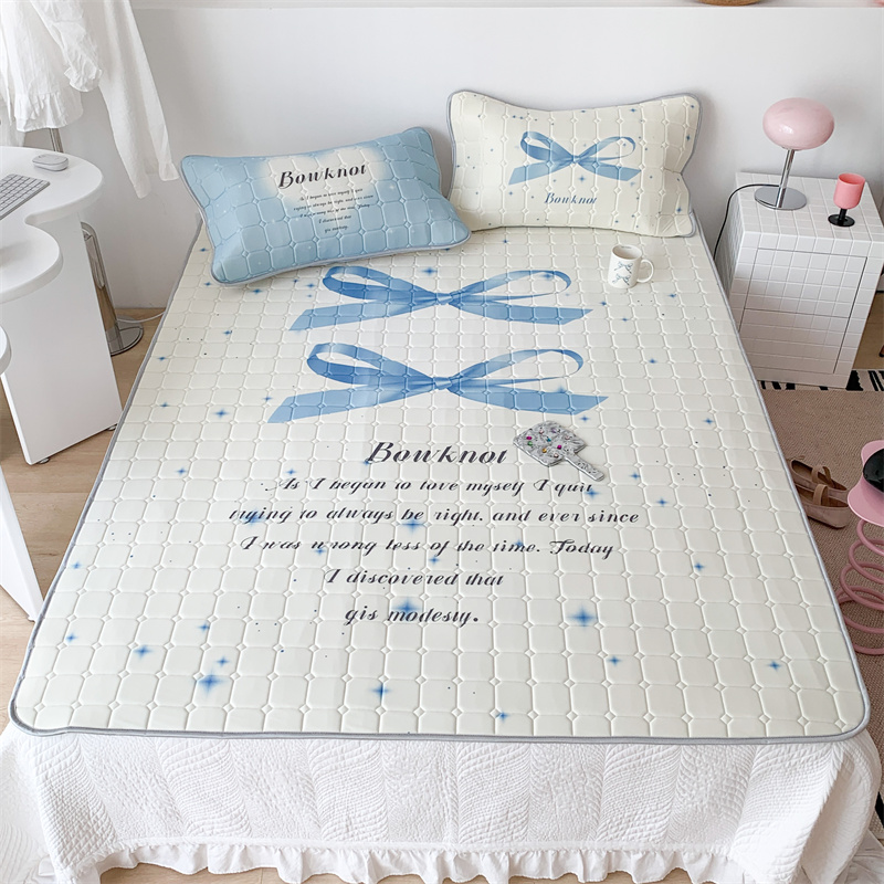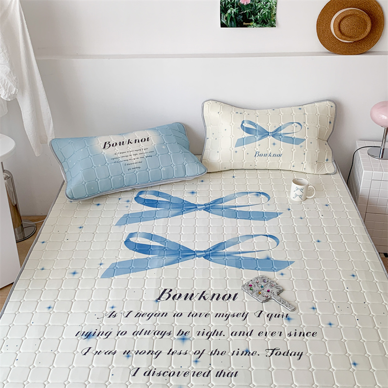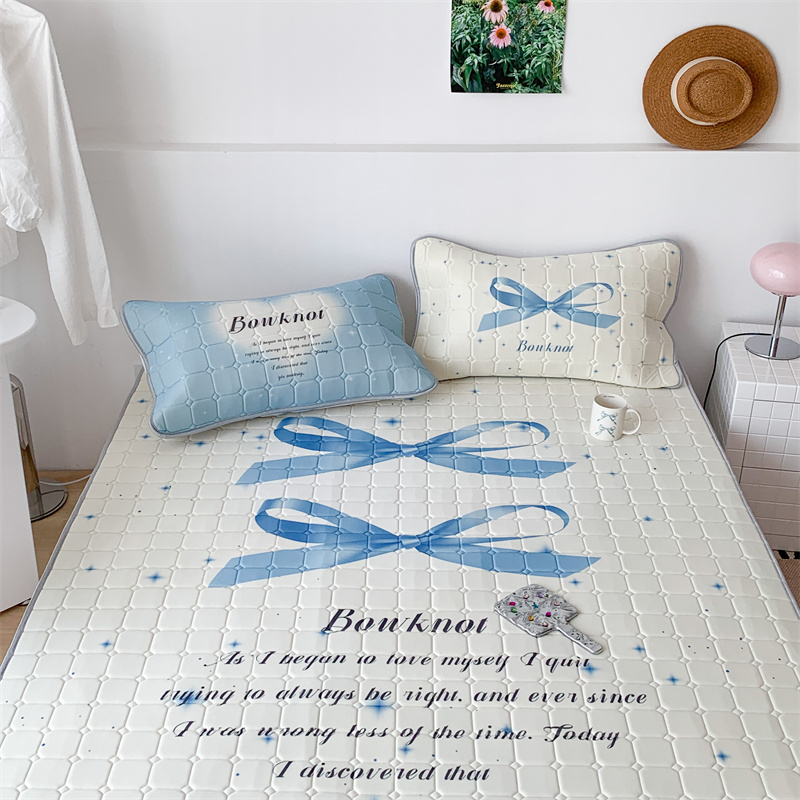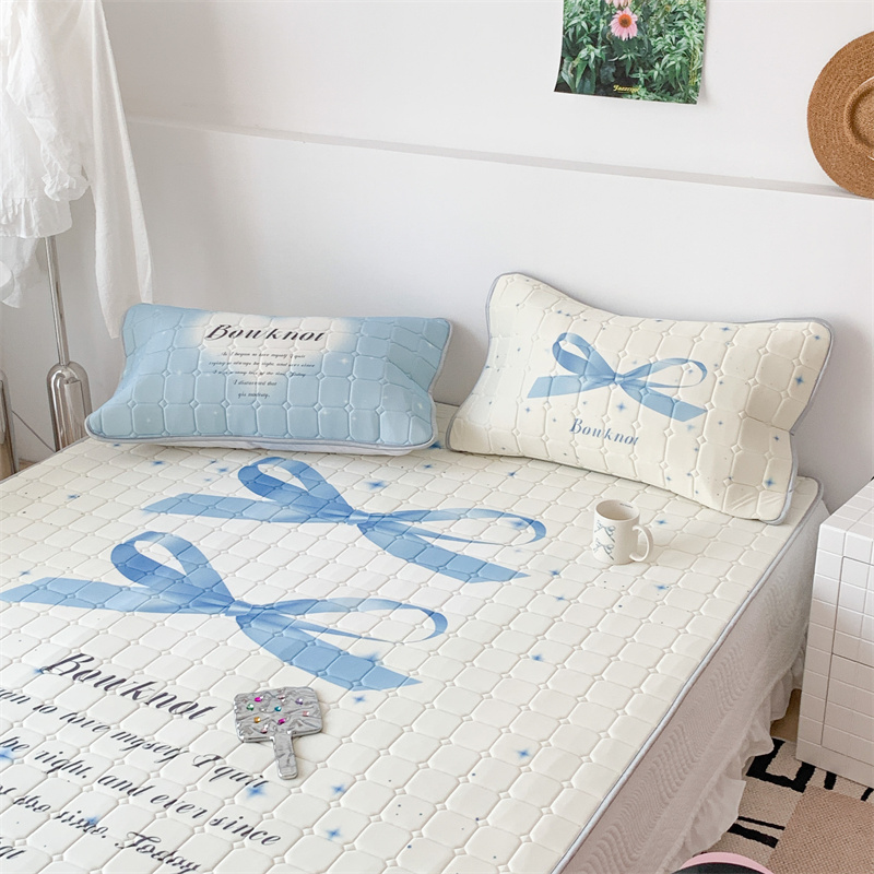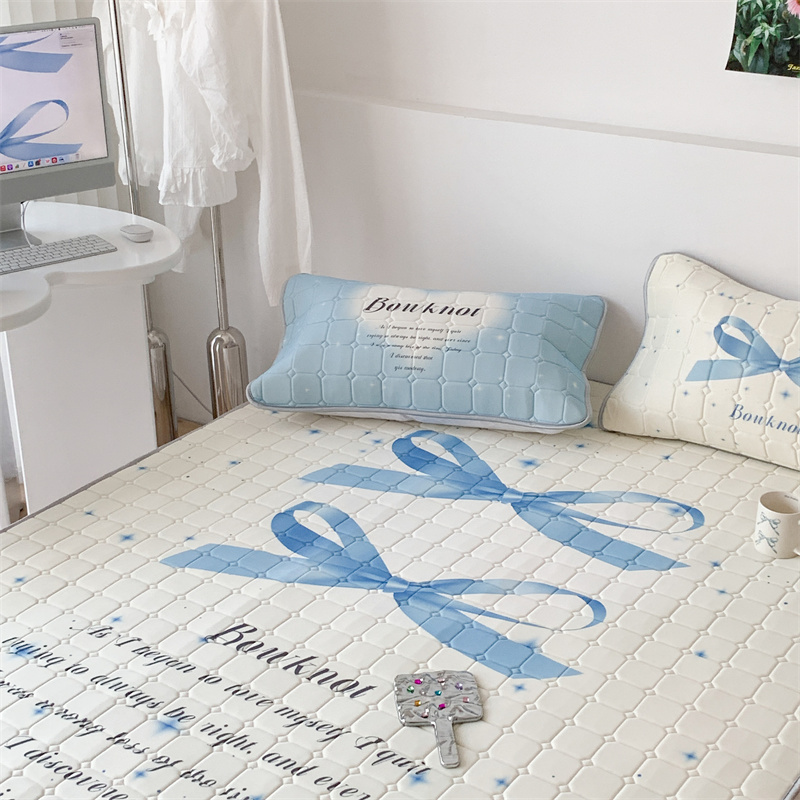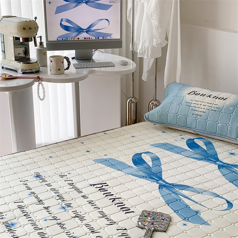 商品名称:昔可 2023新款方块绗缝乳胶凉席芭蕾风 蓝色丝带蝴蝶结