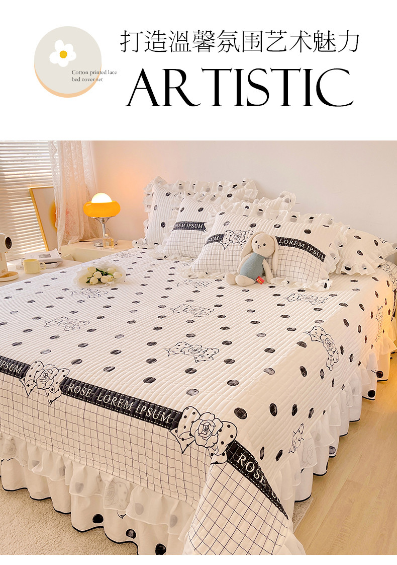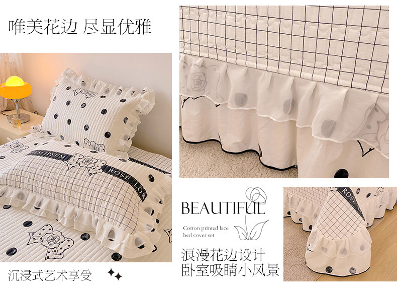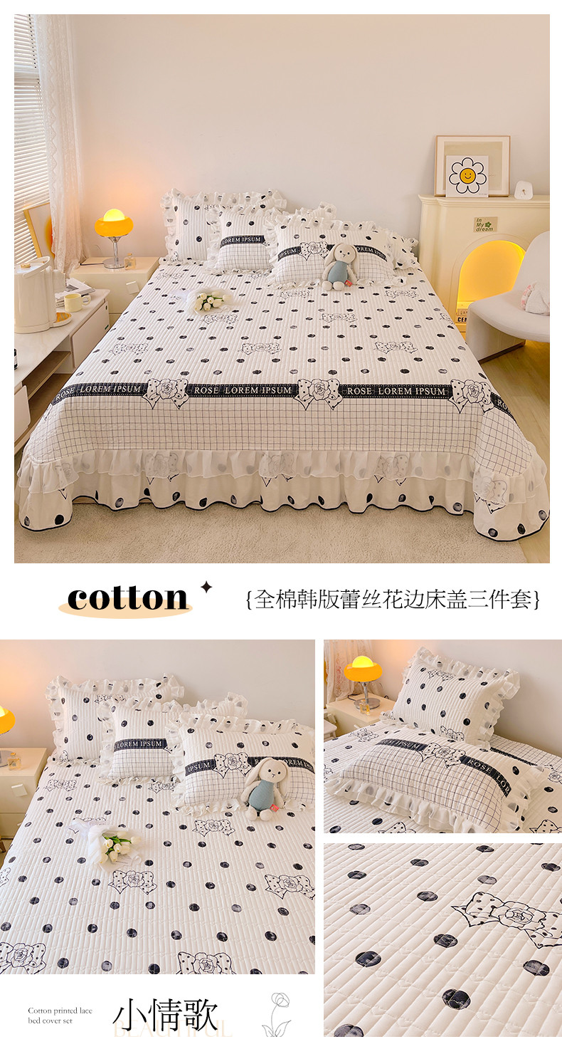 宜凡 2023新款全棉双层花边床盖三件套系列 小情歌