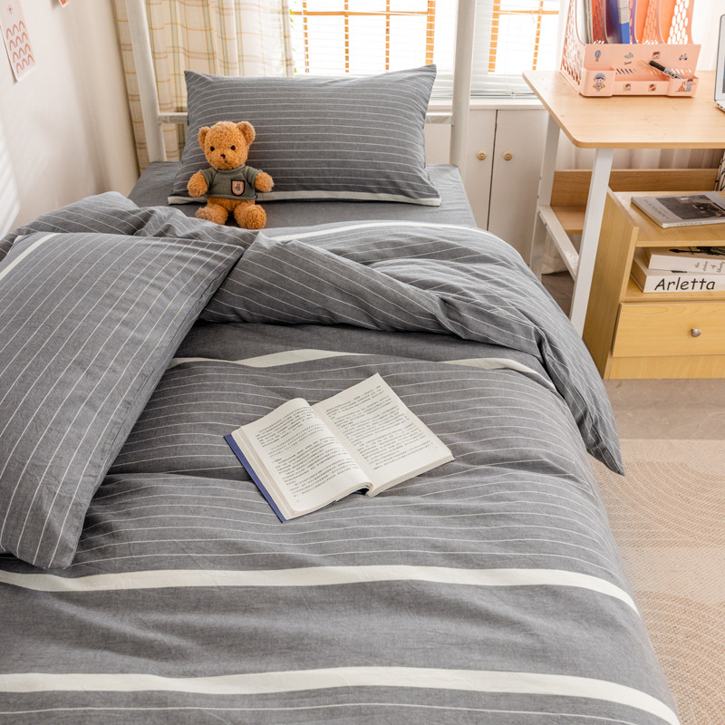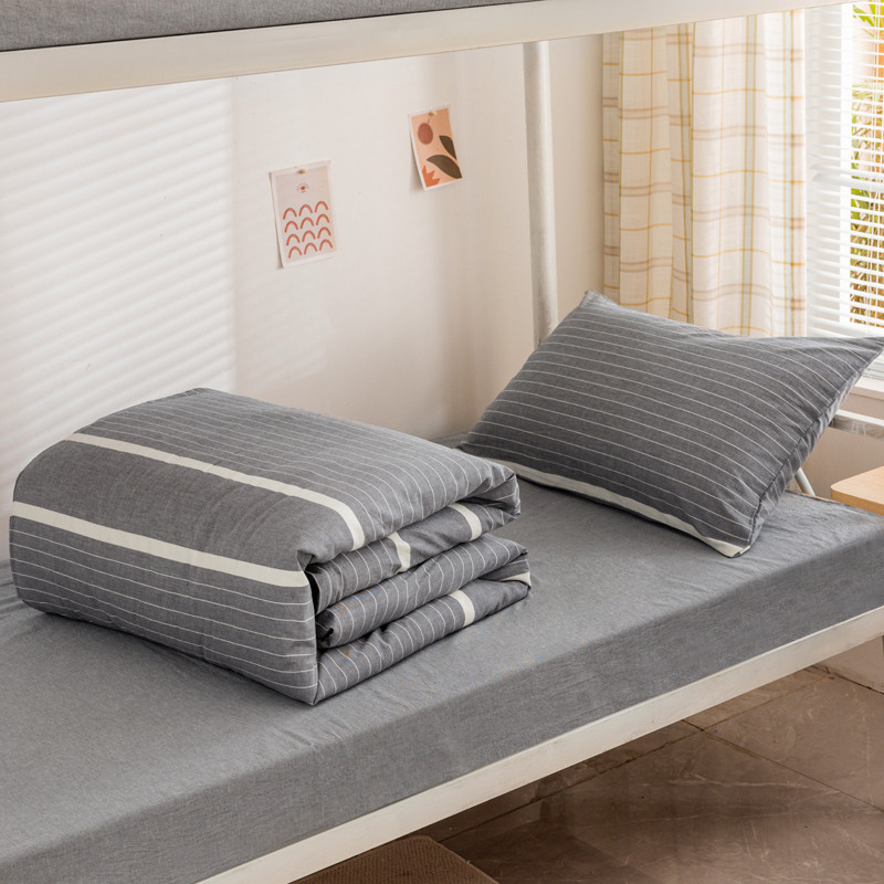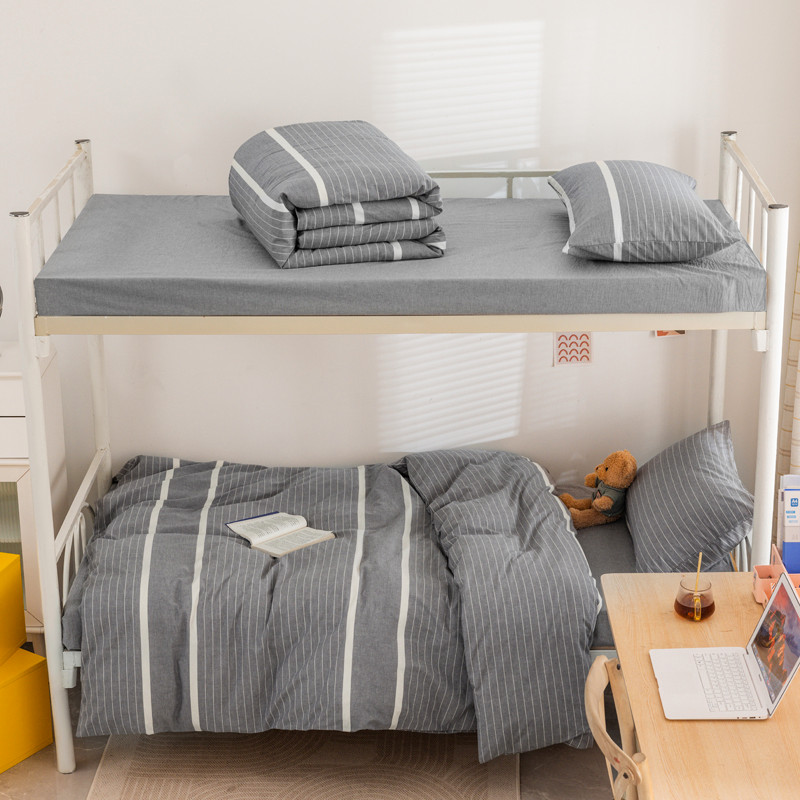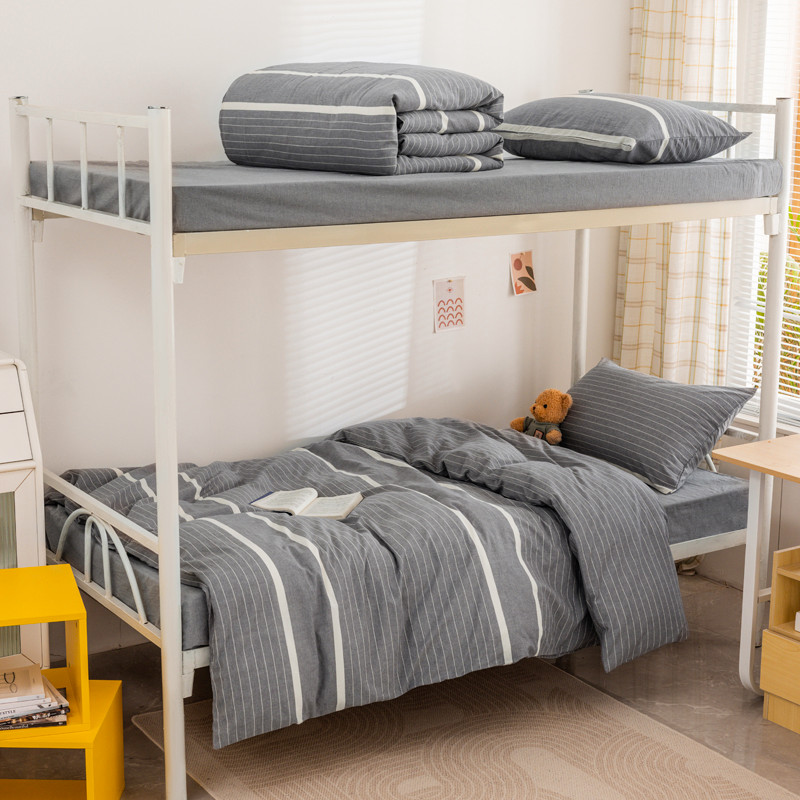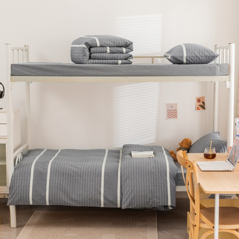 当前位置: 91家纺网 > 商品网购 > 床品套件 > 三件套 > 柠萌 2025新款A类全棉色织水洗棉学生宿舍上下铺全棉三件套 灰白条