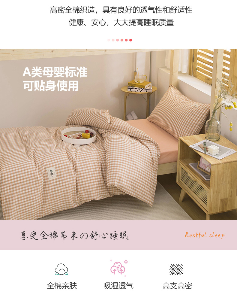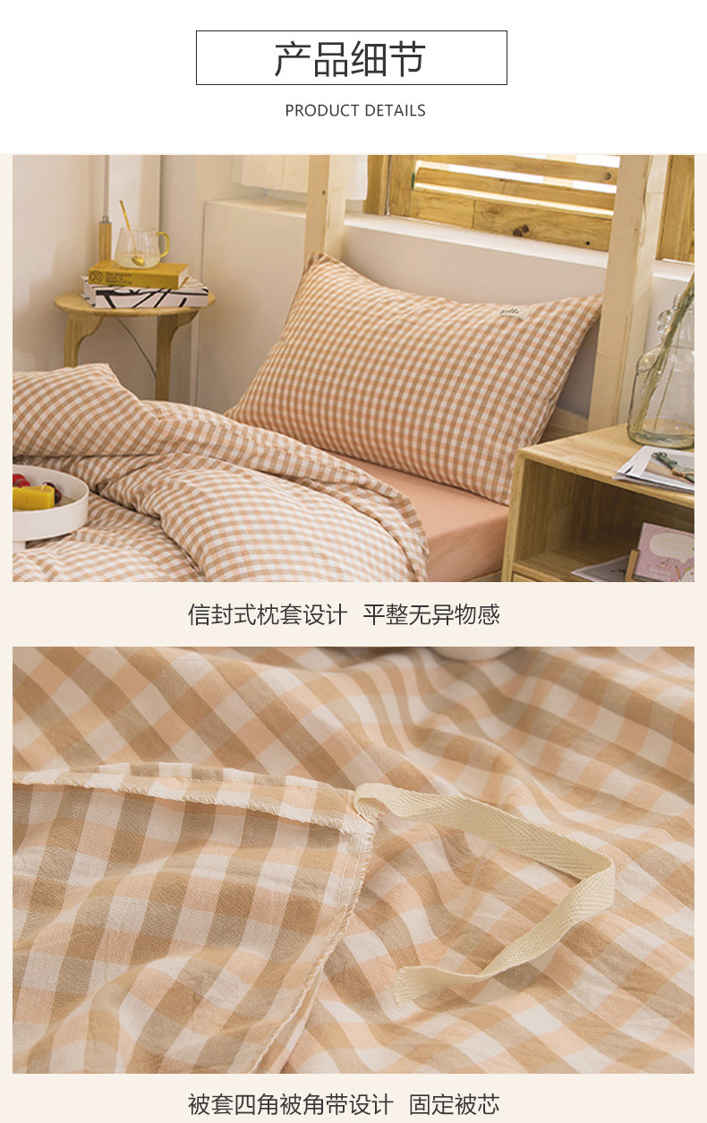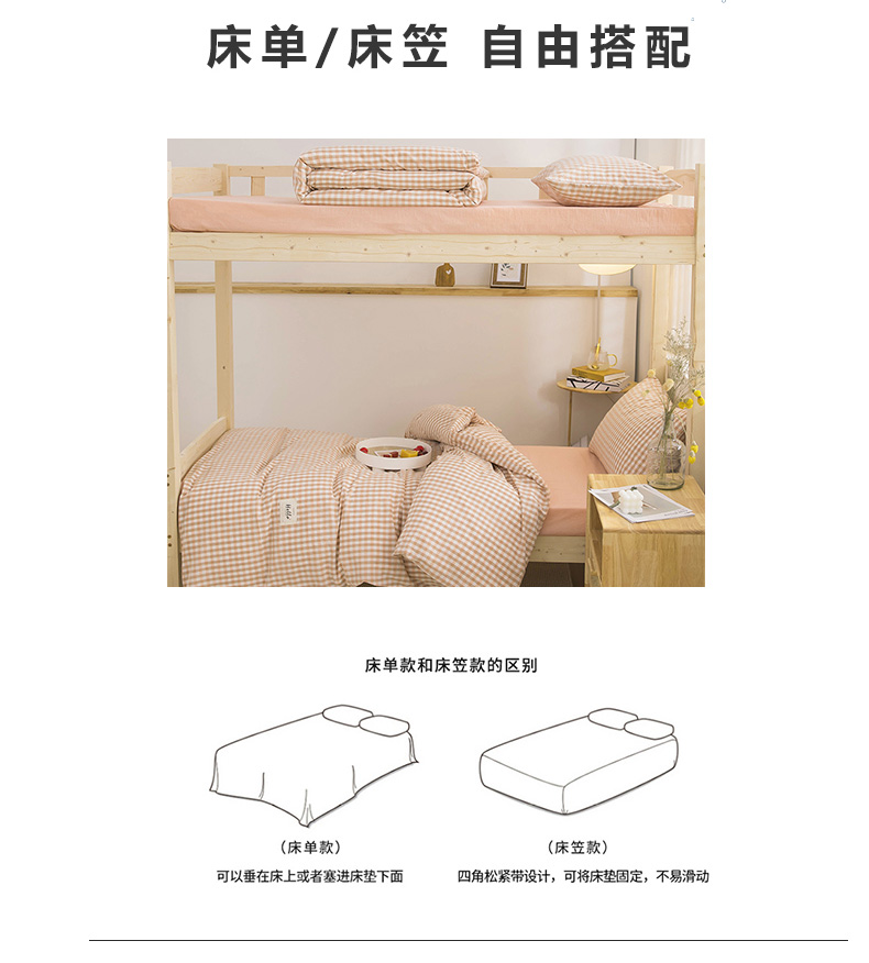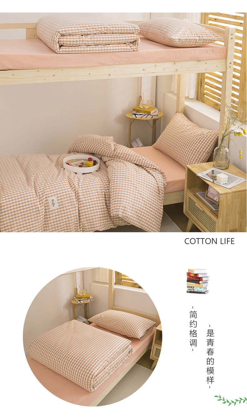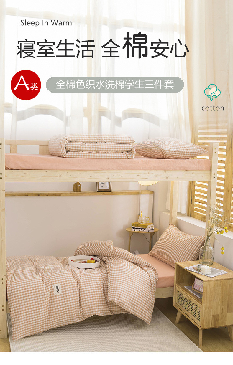 当前位置: 91家纺网 > 商品网购 > 床品套件 > 三件套 > 柠萌 2025新款A类全棉色织水洗棉学生宿舍上下铺全棉三件套 蜜粉小格