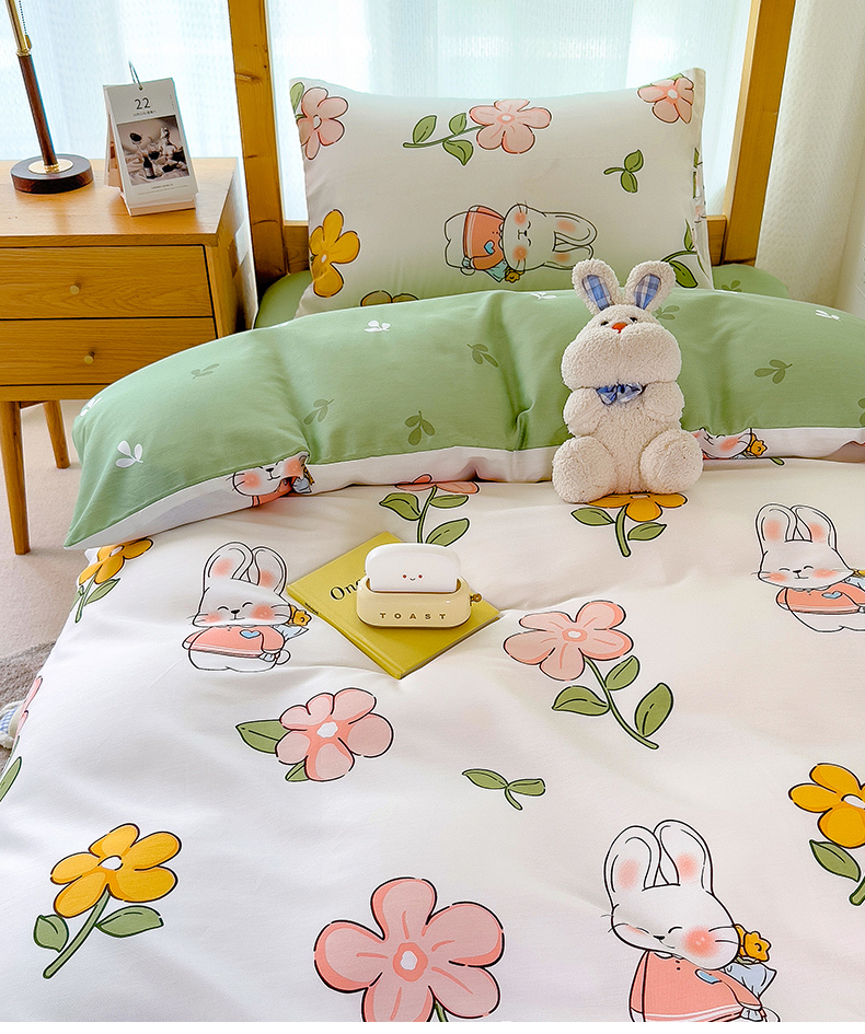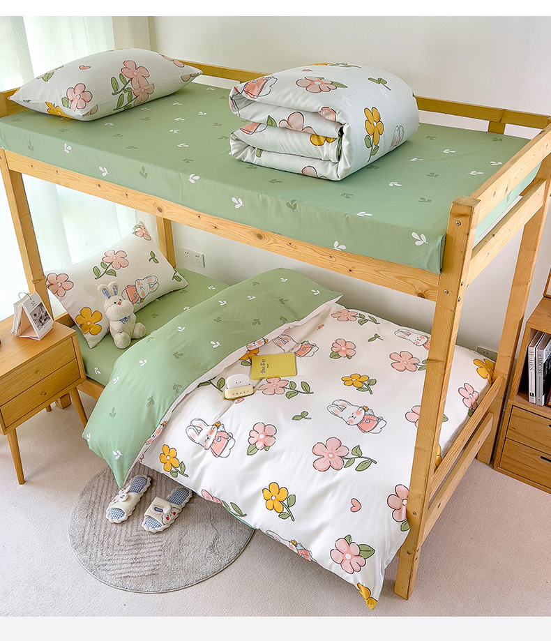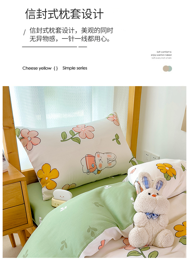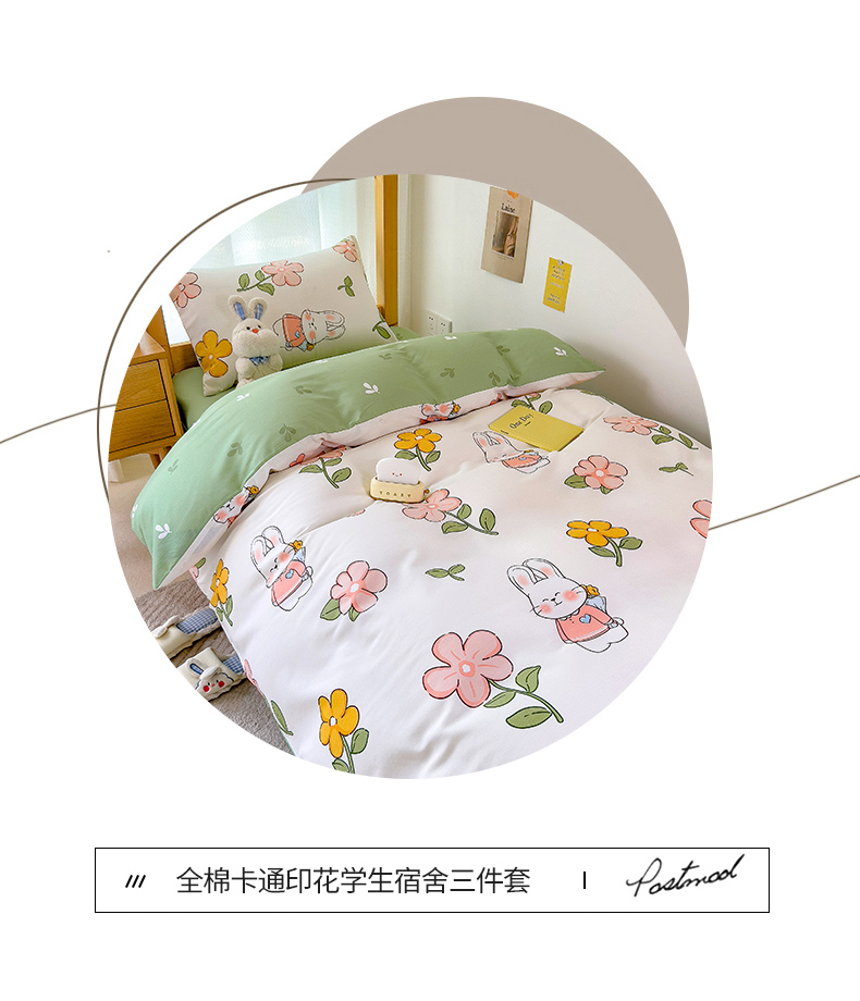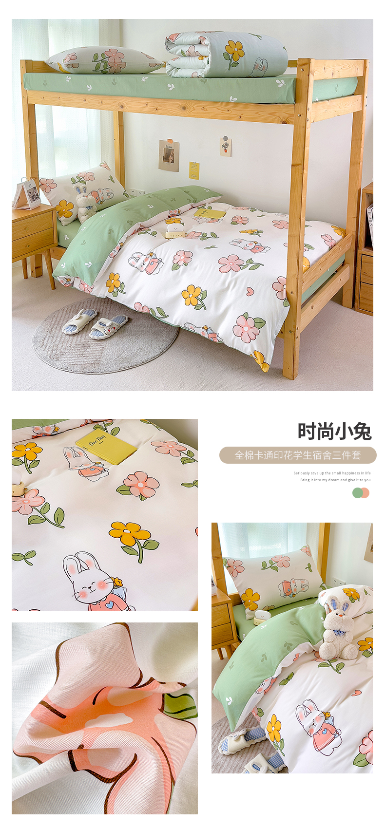 商品名称:芃成家纺 2023新款全棉13070卡通印花学生三件套 时尚小兔