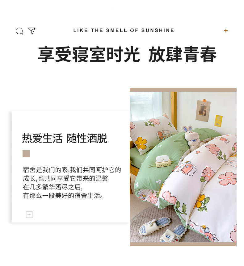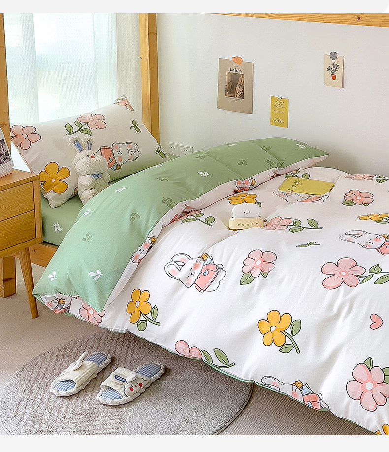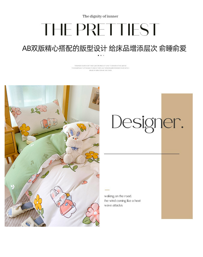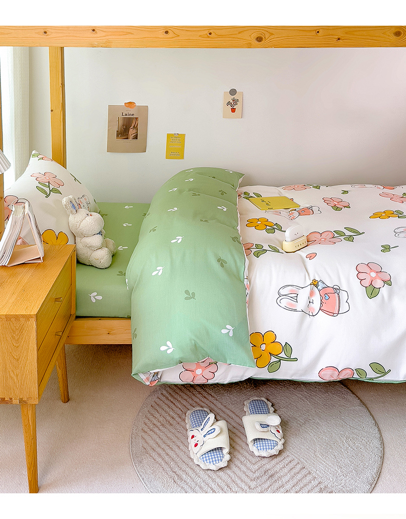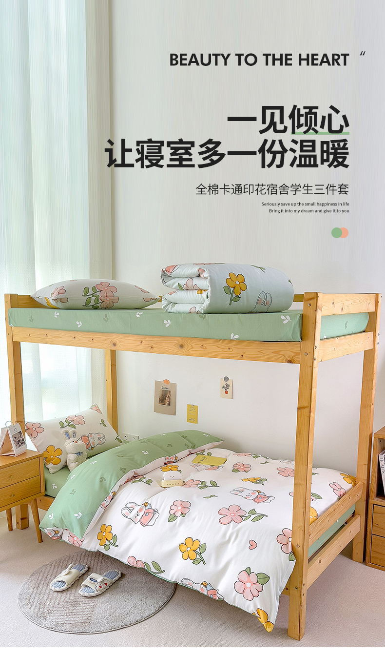 商品名称:芃成家纺 2023新款全棉13070卡通印花学生三件套 时尚小兔