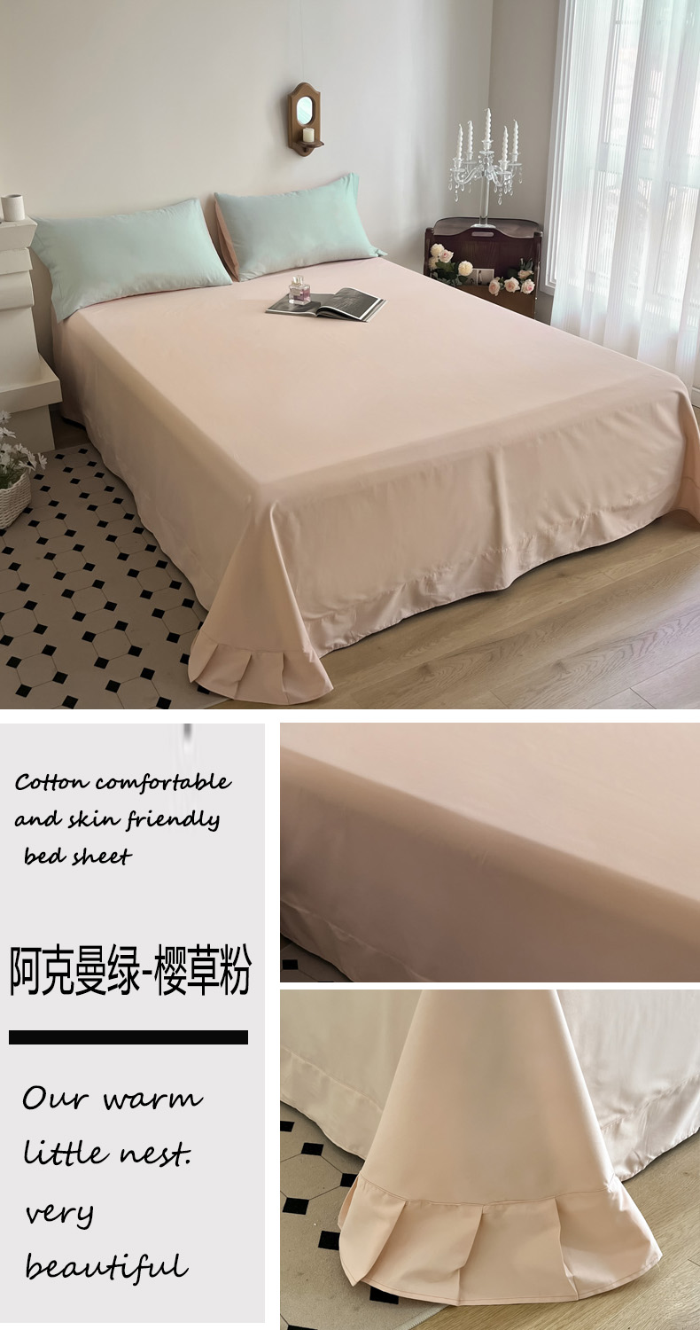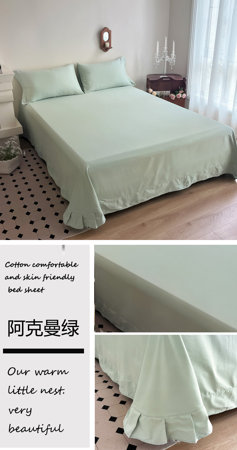 (总)艾迪尚家纺 2026法式韩版荷叶边纯色长绒棉纯棉单床单单品床单床单单件,薄荷青灰,冰川蓝香草白,茉绿奶芙,奶芙慕粉,青提絮语,柔杏浅绿,瑞绿慕斯粉,雾蓝杏语,云白芽绿,云灰仙女粉