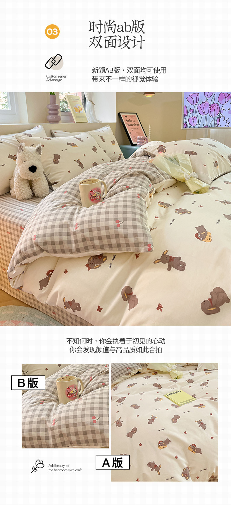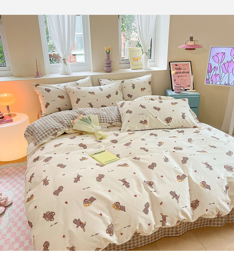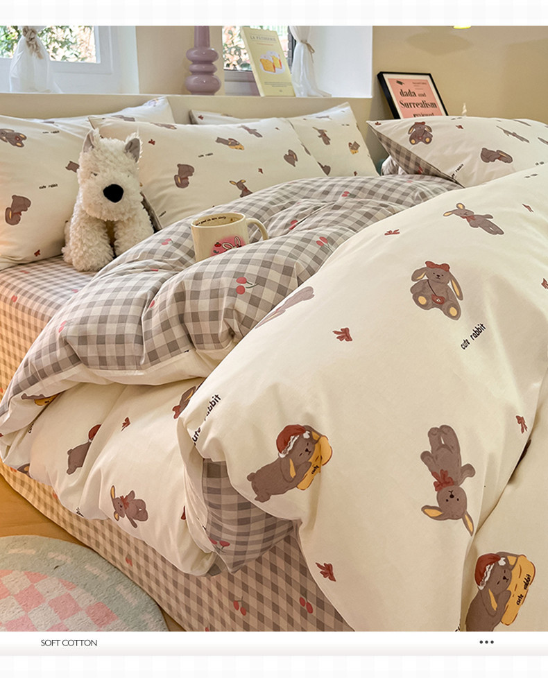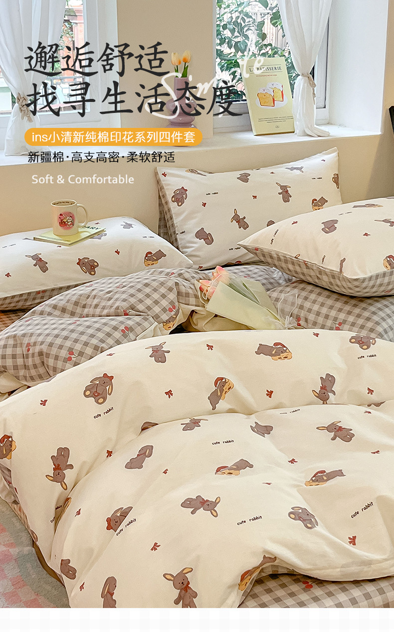 沐棉 2023新款全棉13372小清新印花四件套 欢乐兔