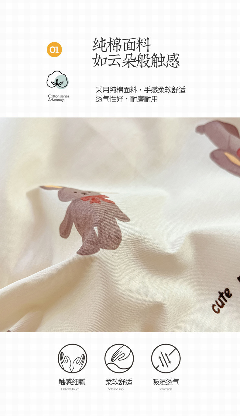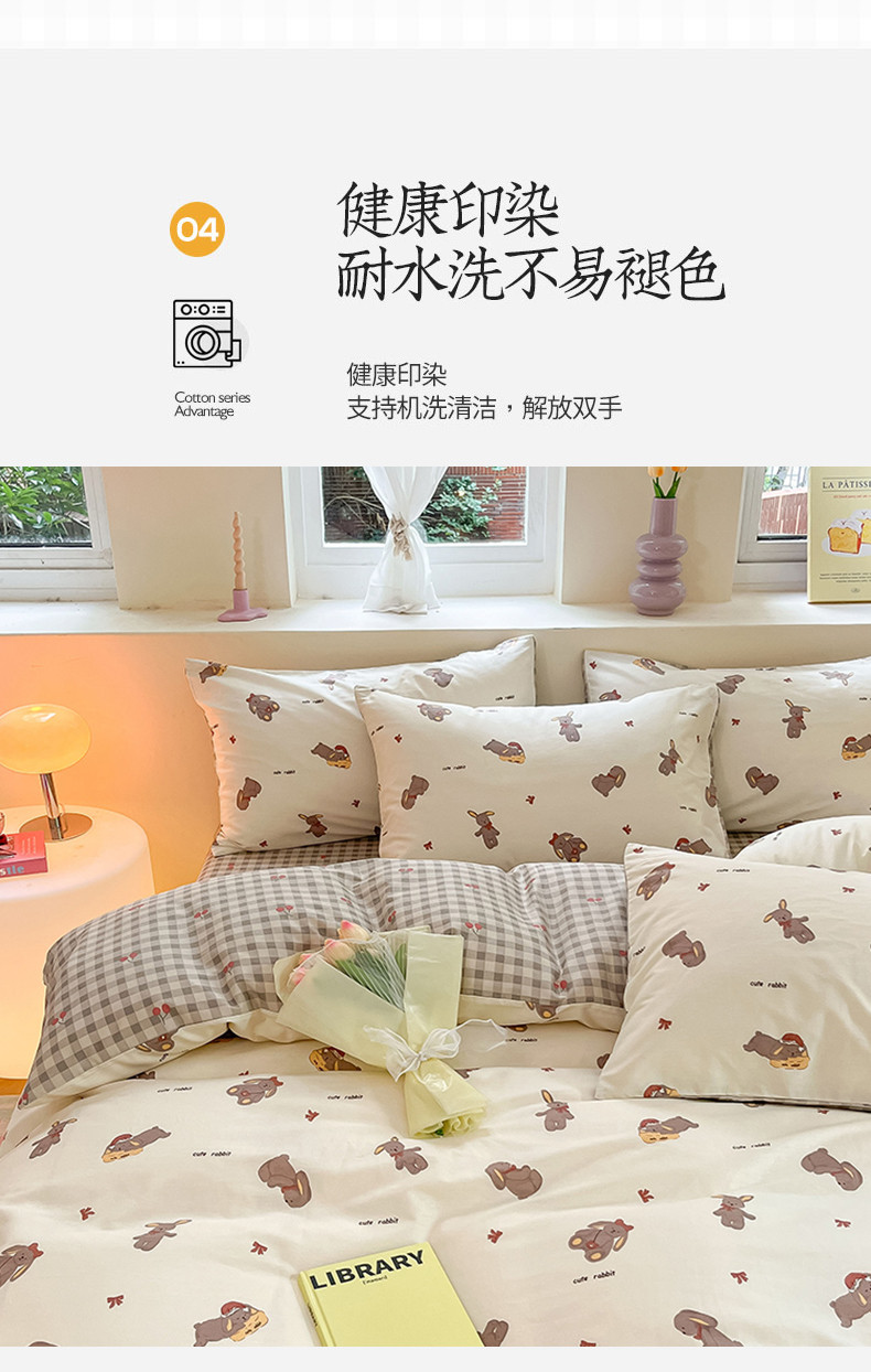 商品名称:沐棉 2023新款全棉13372小清新印花四件套 欢乐兔