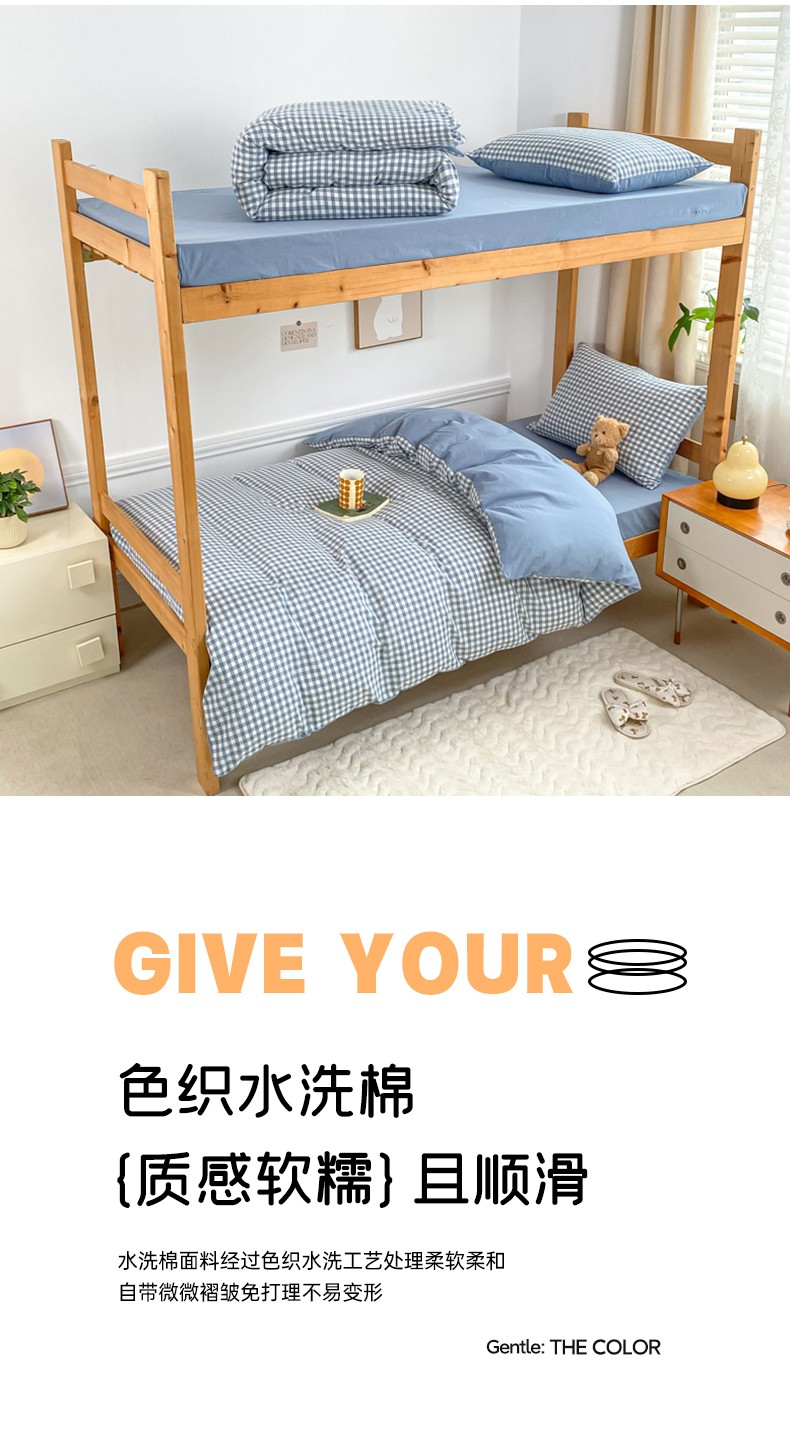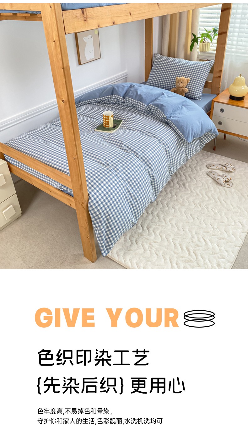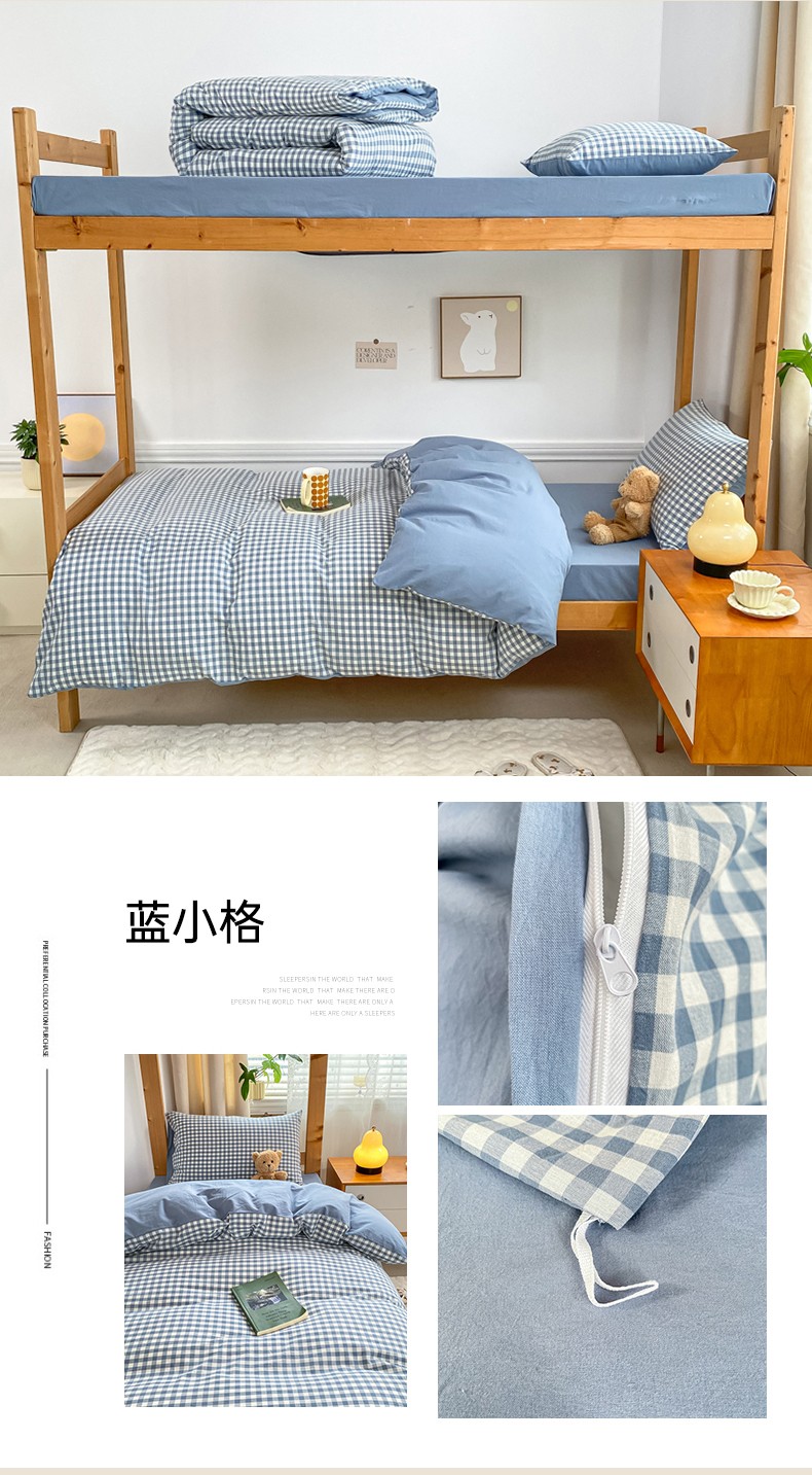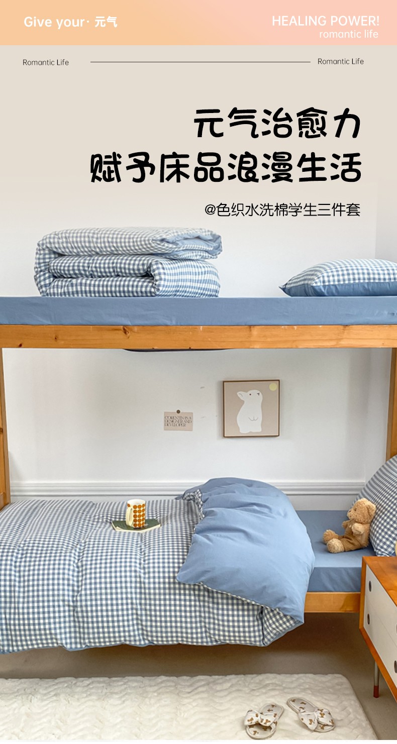 商品名称:吉象 2025新款色织学生水洗棉上下铺三件套 蓝小格