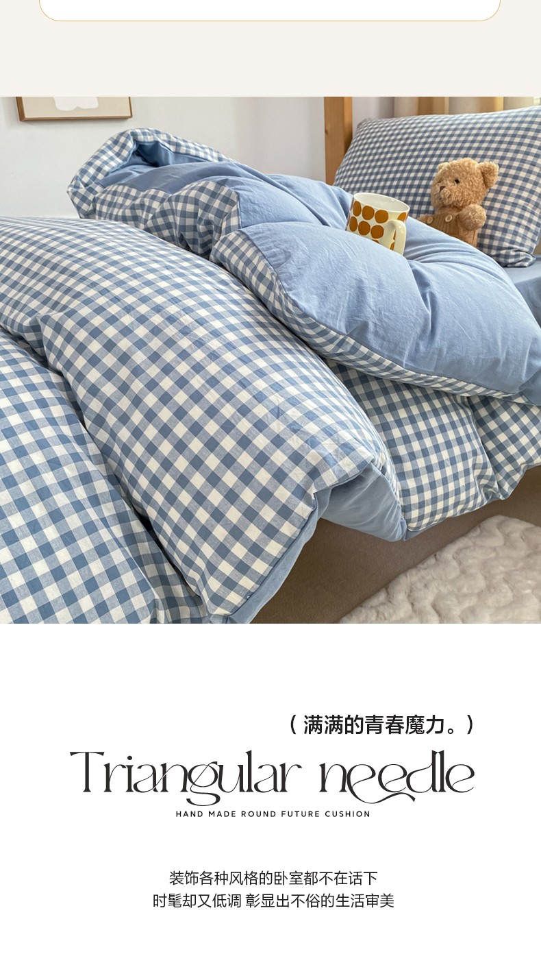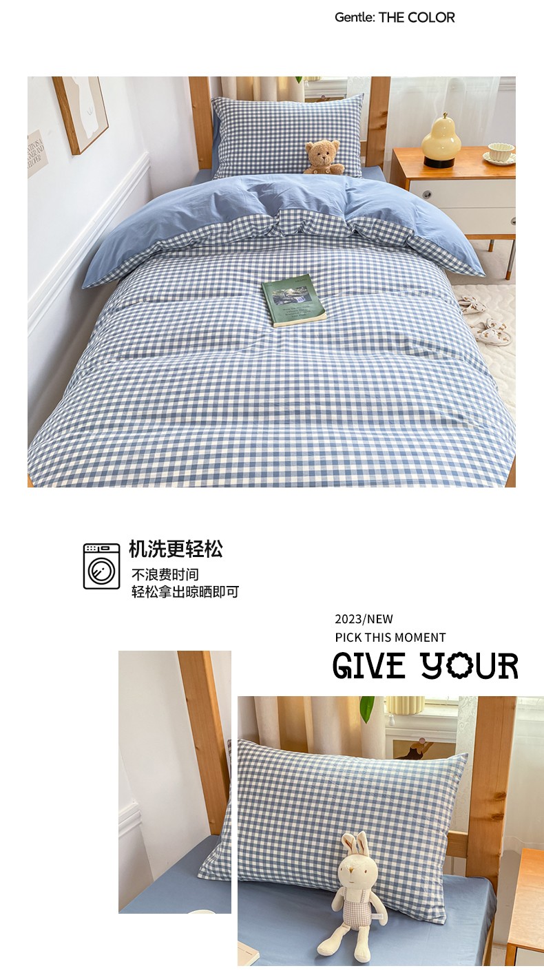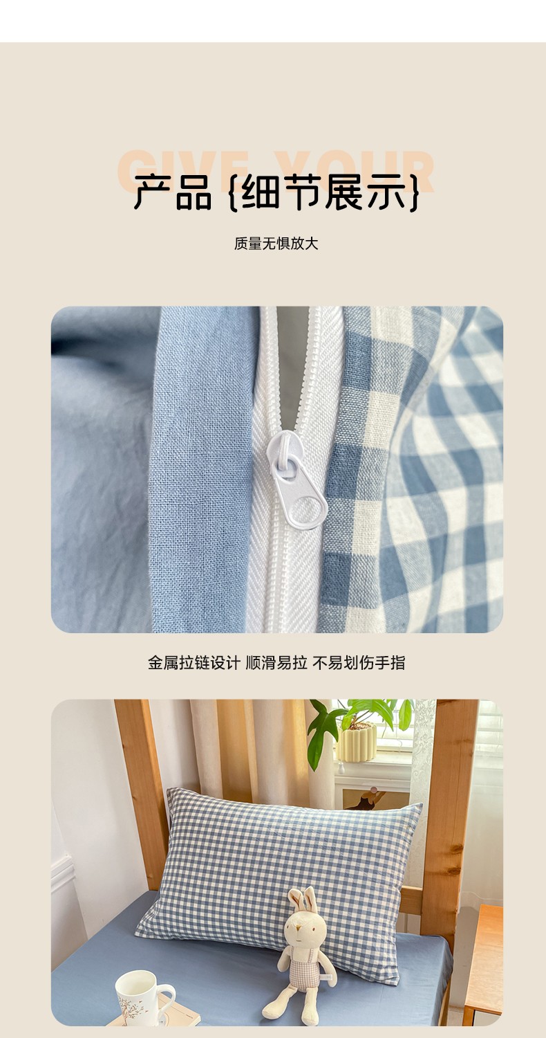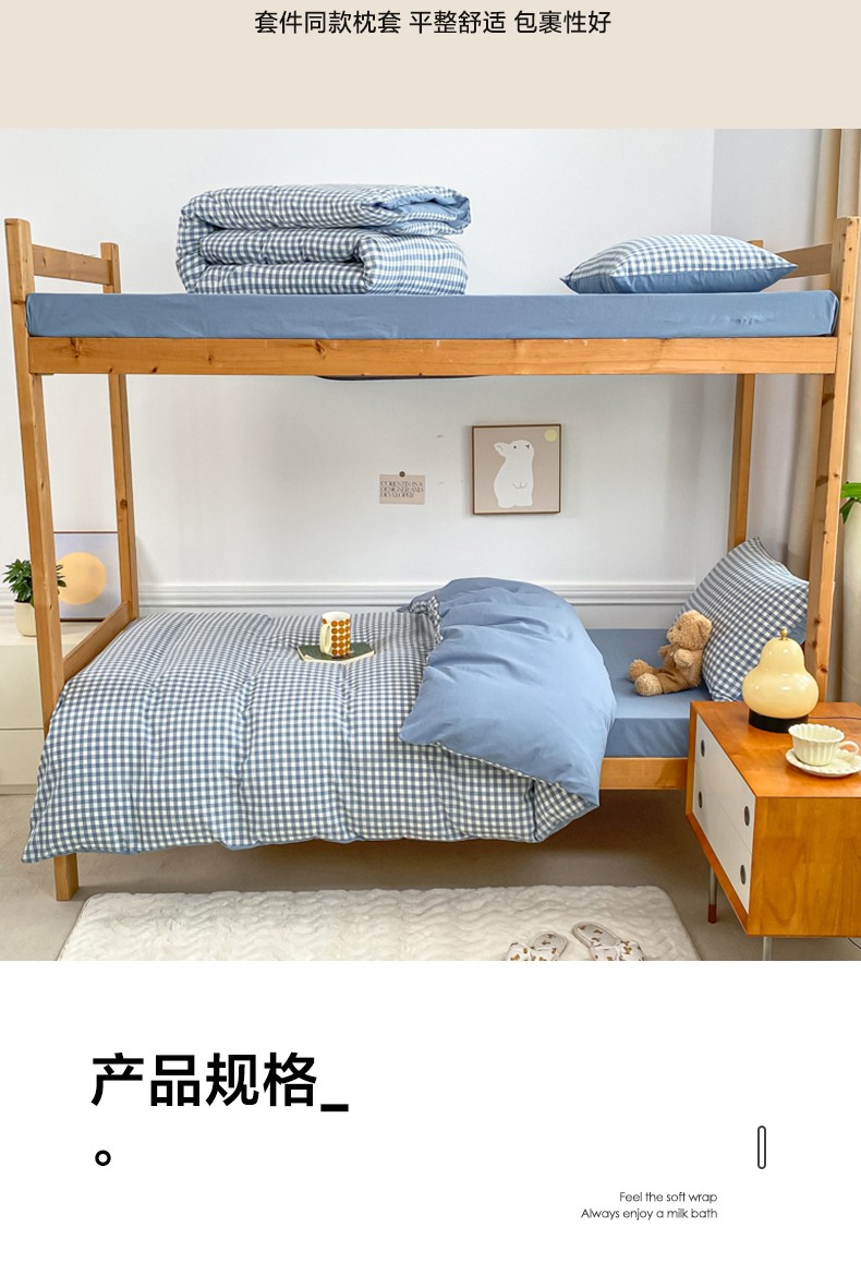 商品名称:吉象 2025新款色织学生水洗棉上下铺三件套 蓝小格